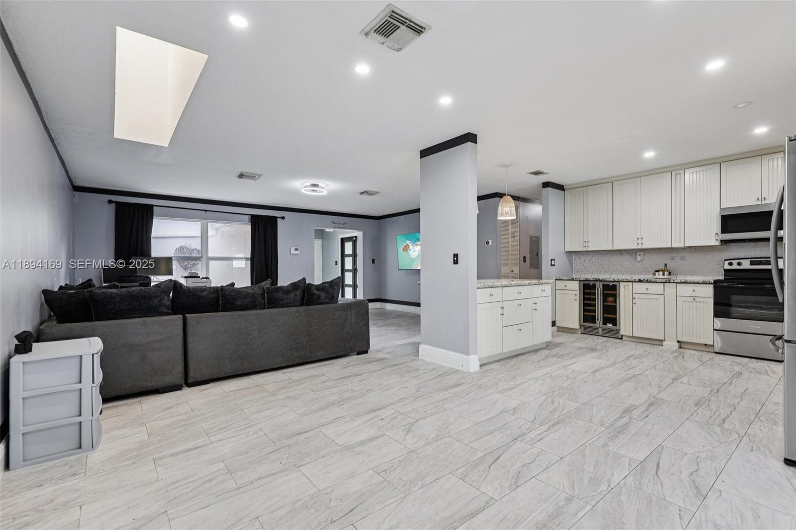 NOW MORE AFFORABLE! Experience this beautifully updated pool home in Welleby South, featuring a circular driveway and tropical curb appeal. Step into the foyer leading to a bright courtyard and an airy atrium filled with natural light from skylights in the new roof (under 1 year old). The open layout flows to a modern kitchen with custom white shaker cabinets, granite counters, farmhouse sink, smart refrigerator, and wine cooler. Tile floors throughout complement impact windows and doors with plantation shutters. Enjoy lush landscaping, a screened patio, oversized hot tub, and sparkling pool—perfect for relaxing or entertaining. Ideally located near Sawgrass Mills, Markham Park, I-595, I-75, and the Sawgrass Expressway, medical centers and schools.