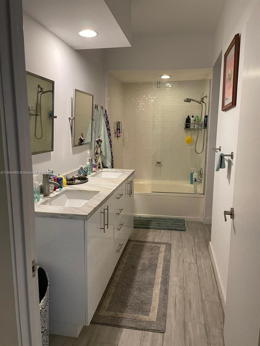 Great-sized, one-bedroom, first-floor apartment in a waterfront gated luxury condominium. High ceilings. Newly remodeled in building 12, closest to the bay. Oversized catwalk, stunning closet, beautiful, spacious bathroom with Roman tub, rain shower, and double sinks. Large kitchen with stainless steel appliances, Full washer, and dryer. Porcelain wood-like flooring throughout, and lots more! Tennis courts, two pools, and a Party room.