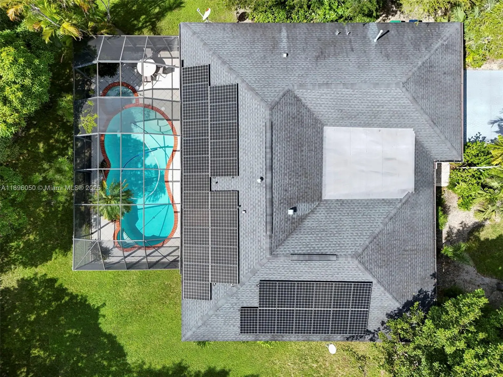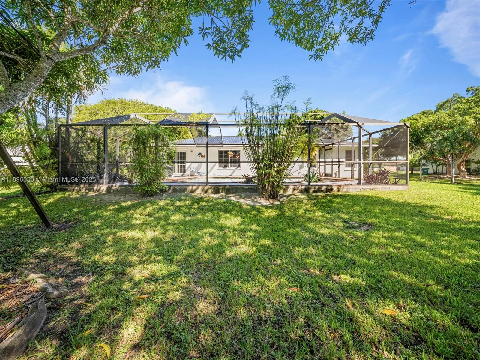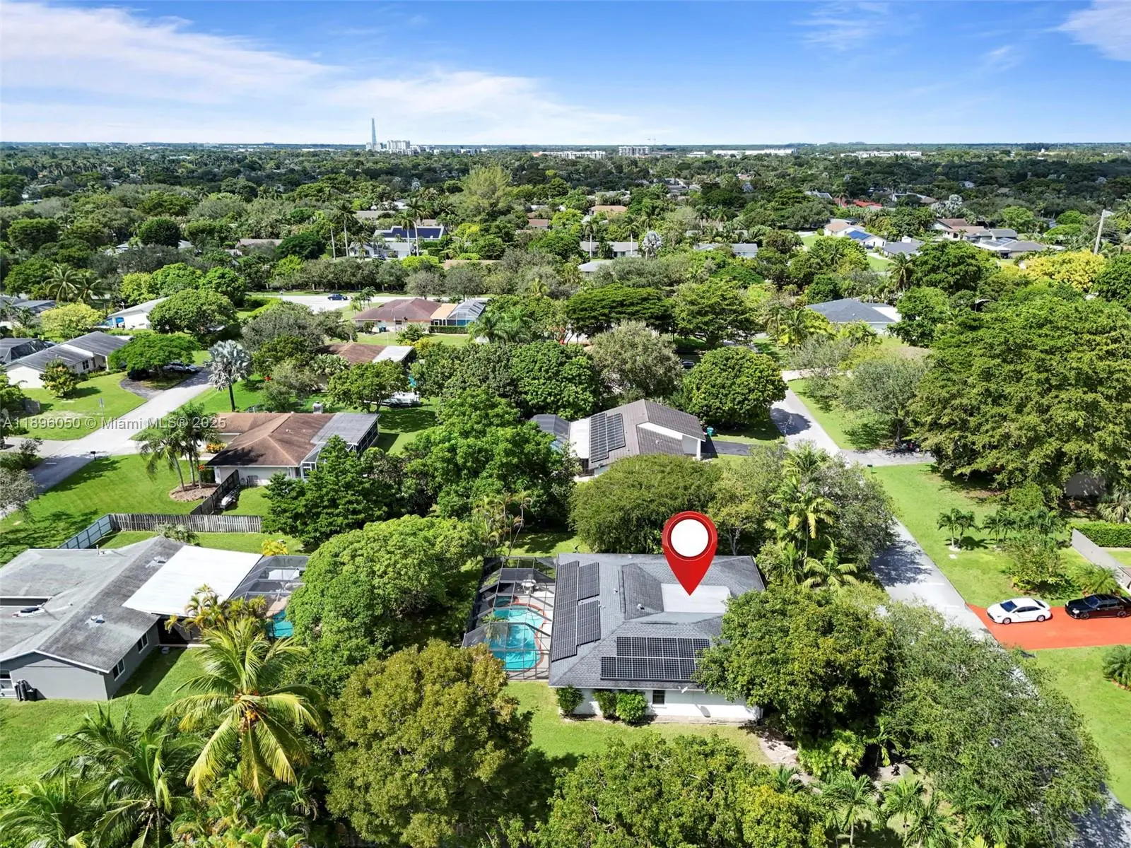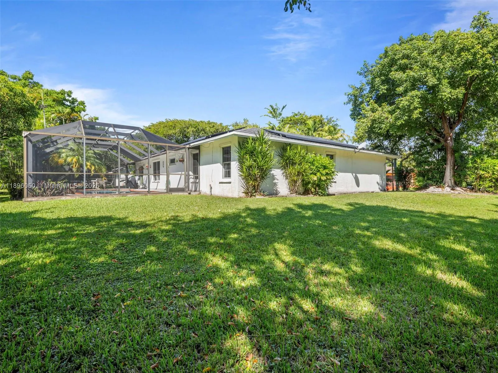 Your Palmetto Bay paradise awaits! This spacious 3 bed + den, 2 bath home delivers resort-style living with a screened-in heated pool + jacuzzi, huge 15,625 sq ft lot, and 2,162 sq ft of upgraded living space (larger than tax roll!). Enjoy confidence in ownership with a newer roof, solar panels to cut electric costs, updated A/C & water heater, and storm resistant double-pane windows. Marble flooring runs throughout, and a 2-car garage provides extra storage and convenience. The oversized backyard is a private retreat surrounded by lush fruit trees, the ultimate setting for entertaining, relaxing, or simply enjoying the sunshine! All in a quiet, sought after neighborhood with top rated schools. Don’t miss this rare find, move in and enjoy!