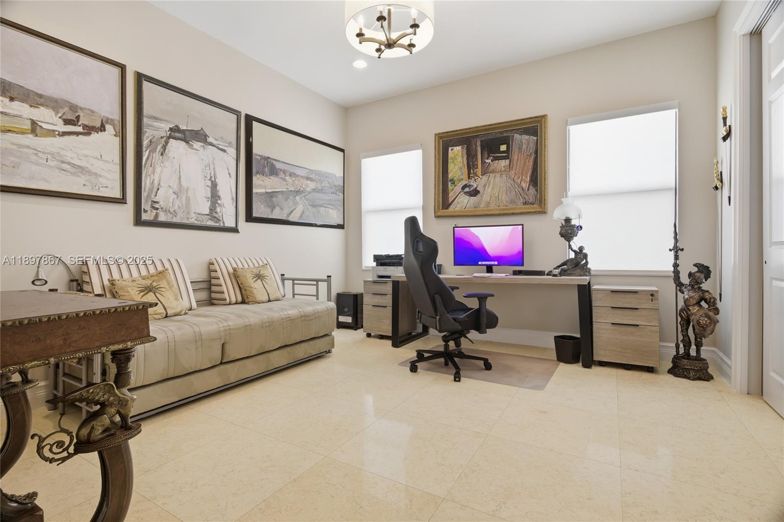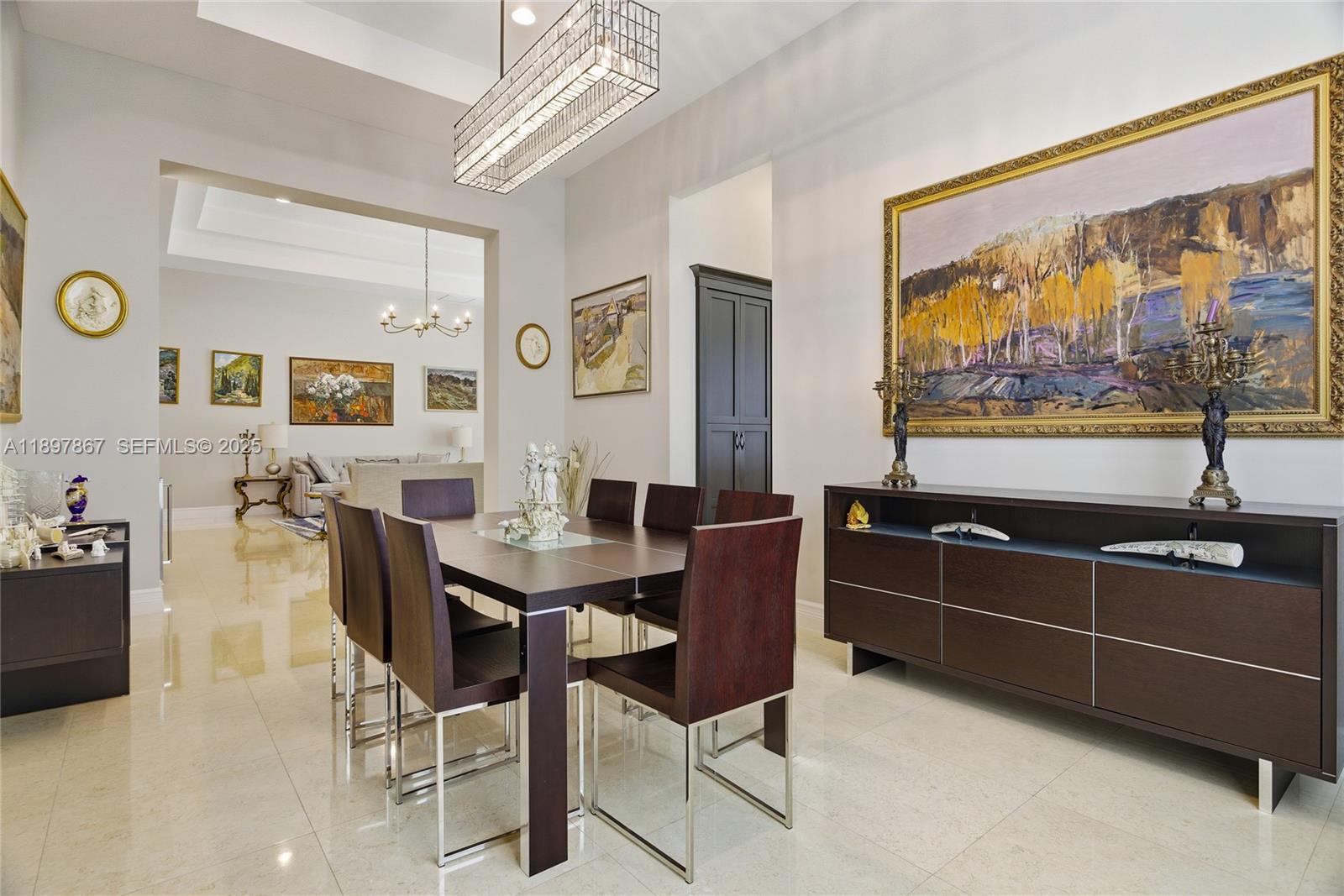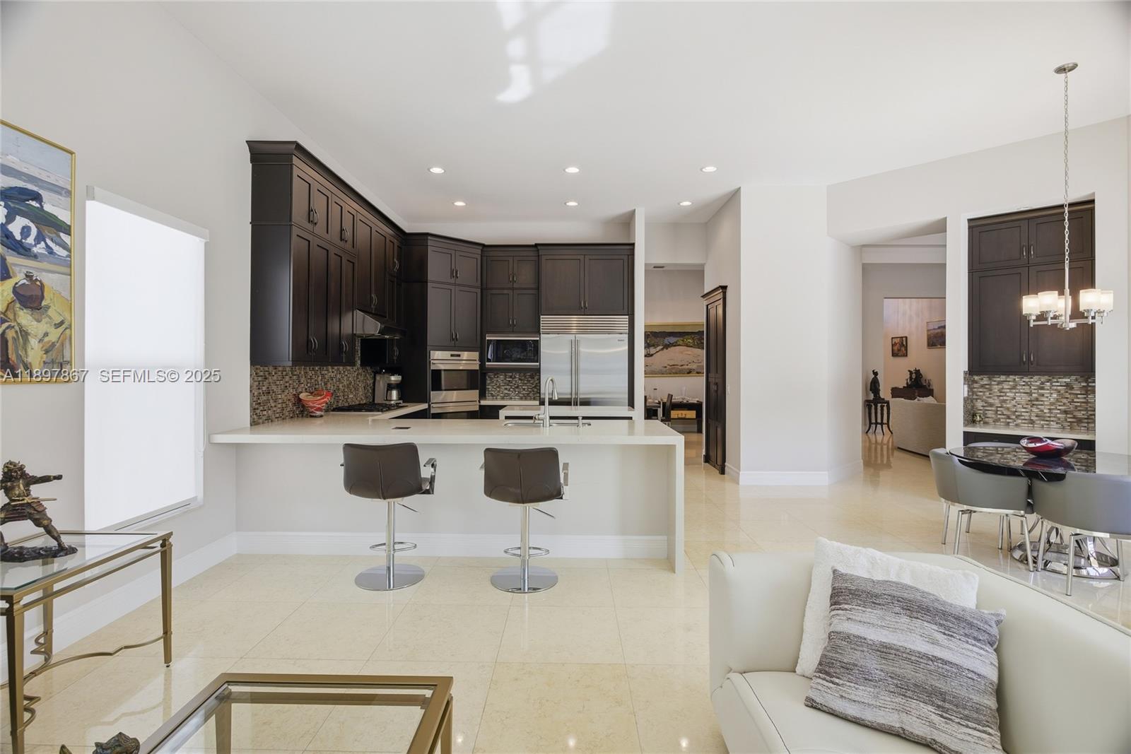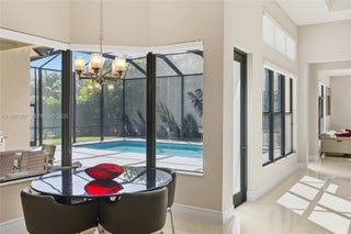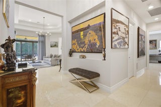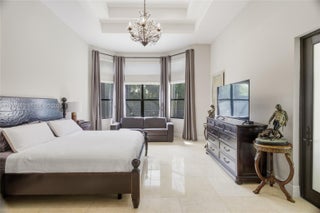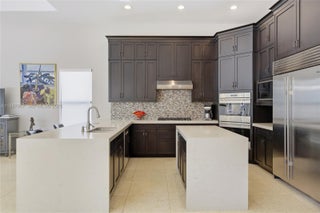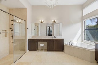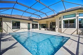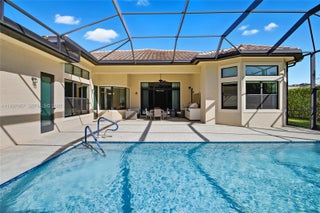 Beautiful Charleston Grande model in Seven Bridges! This one-story 5BR/5BA home offers nearly 4,000 sq. ft. on one of the largest corner lots, providing complete privacy with no homes or roads directly facing the property. Just a short walk to the 30,000 sq. ft. clubhouse. Features include a gourmet kitchen with high-end stainless steel gas appliances, formal dining room, wet bar, impact glass windows, spacious ensuite bedrooms, and a circular driveway. The primary suite boasts a coffered ceiling, dual walk-in closets, and a luxurious bathroom with dual sinks. Enjoy the screened saltwater pool with heater and outdoor kitchen. Additional upgrades include a whole-house generator, camera system, and full-home water filtration. Meticulously maintained and move-in ready—this home is a must-see!
