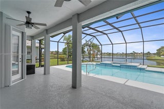 Outstanding home in the beautiful gated subdivision of Legend Lakes is available! Breathtaking long lake views. Sparkling pool in large screened in lanai. Southern exposure helps keep the pool area sunny all day! Spacious kitchen with upgraded cabinets and stainless steel appliances. Additional room could be a 4th bedroom, den or office. Plenty of room for your cars with the 3 car garage. Enjoy the well managed lake which provides some of the best bass fishing in the area and contains a wide array of wading birds.