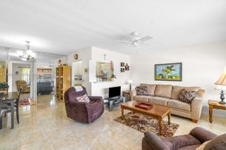 Ready to move in gorgeous unit with a most serene view of the lake and garden. Large screened porch for the entire length of the apartment. Turnkey, just bring your toothbrush! New AC's both in the lv room and bdrm. Remodeled powder room, new toilets, faucets and plumbing in both vanities, all tile flooring, no carpet! Building has a new roof, new paint and fixtures. All assessments already paid in full by Seller. Low maintenance. Active community with LOTS of amenities from 145000 sq ft clubhouse, a theater, 16 pools to choose from to state of the art fitness center, tennis, pickle ball, bocce ball, theater, courtesy bus etc. ONLY 3 miles to the Beach! Walking distance to parks, shopping, restaurants and houses of worship. Manned security gates. Lovely home!