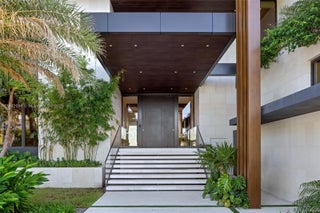 Experience uncompromising luxury in this newly completed tropical modern estate, set within the exclusive guard-gated enclave of Sans Souci Estates. Developed by Sunlight Homes and designed by Preschel Bassan Studio, this 8,000 SF residence offers 7 bedrooms including staff quarters, 7 full and 2 half baths. A stone façade opens to interiors with a chef’s and butler’s kitchen, custom millwork, imported stone, and European oak flooring. Features include a wine room, high ceilings, elevator, and 3-car garage. Outdoors, 103 feet of water frontage with new seawall and dock showcase bay views and downtown sunsets. Furnished by Minotti, Baxter, and other iconic brands, this is a rare modern masterpiece moments from world-class shopping, dining, and coastal attractions.