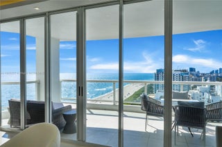 Experience oceanfront living at its finest in this newly renovated and beautifully furnished 2BD/2BA residence within a high-end, full-service building. Enjoy panoramic southeastern views of the ocean, bay, and city skyline from a wraparound balcony, plus a second balcony off the primary suite for sunsets. Features include a modern open kitchen with Calacatta countertops, porcelain floors, new stainless steel appliances, impact windows, walk-in closet, washer/dryer, and a spa-style bath with oversized tub and shower. This oceanfront property offers direct beach and boardwalk access and is minutes from fine dining, shopping, and entertainment. Amenities include heated pool, Jacuzzi, sauna, beach service, fitness center, tennis court, 24/7 security, concierge, and indoor parking.