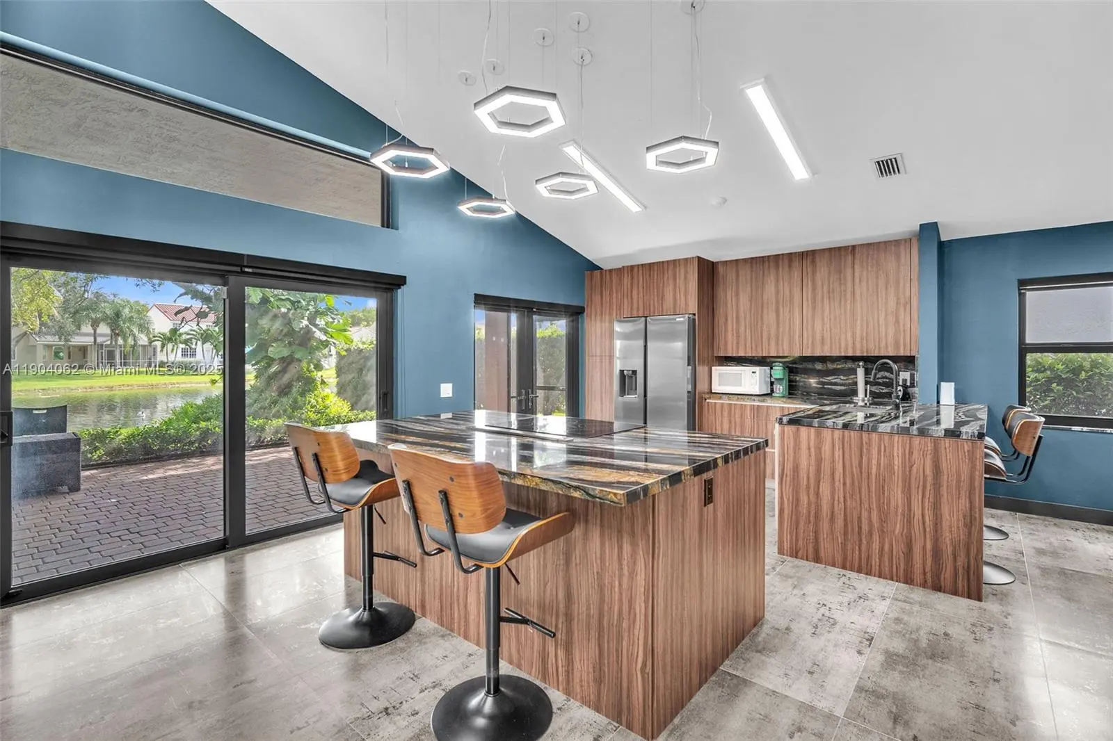 Beautiful modern home located The Lakes at Weston, featuring premium quartzite countertops, and top of the line High Impact windows and doors throughout. New Roof in (2021), new copper plumbing, custom kitchen and bathrooms, wall to wall custom 2'x4' Italian tiles, new paver driveway, entrance and back patio, new screened in porch, New 4-ton A/C (2021), New Lutron switches with dimmers and outlets. Every detail has been thoughtfully updated to combine style, durability, and comfort-perfect for buyers seeking a truly move in ready modern home.