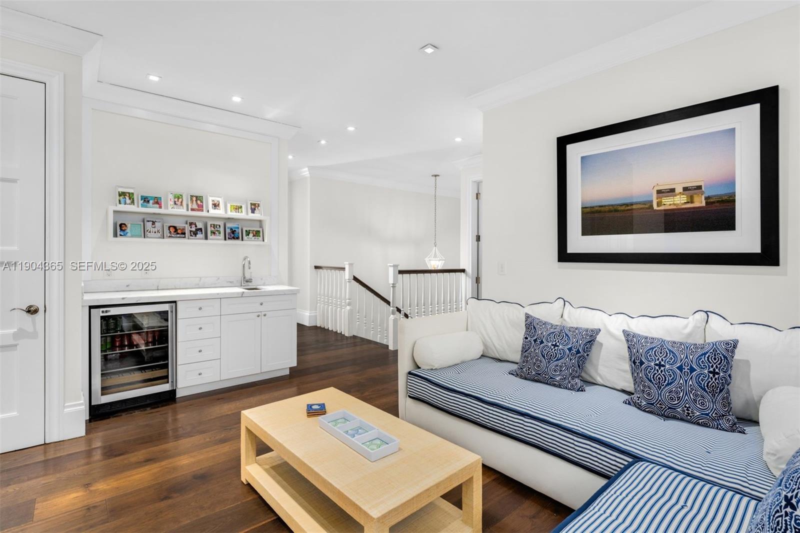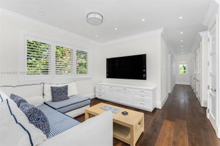 Set on prestigious Sunset Island II, this 2016 ground-up, custom-built residence—designed by award-winning architect David Johnson—offers 4 ensuite bedrooms, a media/pajama lounge with wet bar, 2 private offices, and a flexible gym that can easily convert to a fifth bedroom. Bathed in natural light, the living spaces include a gourmet eat-in kitchen with Calacatta marble island, flowing seamlessly to the family room and a heated infinity pool with expansive covered terrace and summer kitchen. The opulent primary suite boasts a private balcony, spa-inspired bath, and custom walk-in closet. With Sonos, Lutron lighting, Wolf/Sub-Zero appliances, coffered ceilings, 10” oak floors, gated entry, lush landscaping, and a 60kW generator, this home embodies refined, effortless island living.