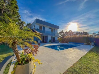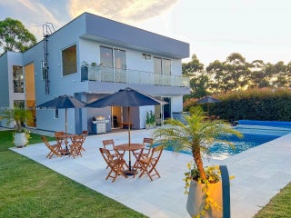 Spectacular home located in new development Paraíso Escondido, private gated community. Built in 2024. 14094 SF lot, 3,326 SF of living area, 1,615 SF terrace, rooftop, heated pool, and sauna. Offers 5 bedrooms (heated rooms), 6 bathrooms, office, and deck to enjoy the sunset. High-end open kitchen with marble finishes, porcelain tile floors, gas fireplace, 10,000 liter rainwater recovery system. Solid double-block construction (30 cm walls, reinforced for security), parking for up to 15 vehicles. Just 10 km from the INTERNATIONAL AIRPORT, 5 minutes from the Medellín–Bogotá highway, and near Juan del Corral battalion. Peaceful and secure area with amazing views. Nature paradise near the city. Located at Rionegro, Antioquia, Colombia. Airbnb Allowed!