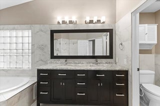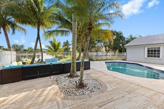 This beautifully updated resort style single-family waterfront home has it all, including solar panels and substantially reduced FPL bill. It features a modern kitchen, 5 bedrooms, 2.5 baths, 2 car garage, 2600+ sq ft. living area, 4 high end wall mounted flat screen TVs and more. The backyard features a heated SALT water pool, Argentinian BBQ built-in grill, waterproof sectional sofa, Adirondack chairs, fruit trees and breathtaking lake view. The spacious split floor plan layout is well suited for a growing family. Landscaping and pool maintenance are included. A rated public school system. All information herein is deemed accurate but not guaranteed.