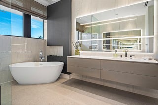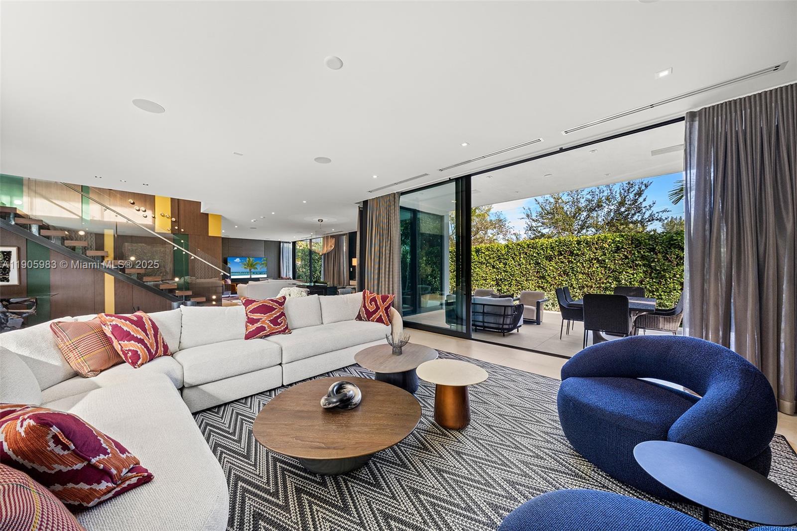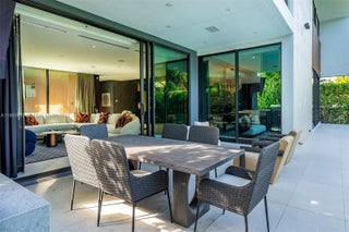 Stunning contemporary villa in Miami Beach’s Nautilus neighborhood, offering a two-story entry, open living and dining areas, a custom chef’s kitchen, and abundant natural light. Features a private pool with lush landscaping, a first-floor guest suite, and spacious en-suite bedrooms upstairs, including a primary suite with walk-in closet and terrace. High ceilings and modern finishes throughout.