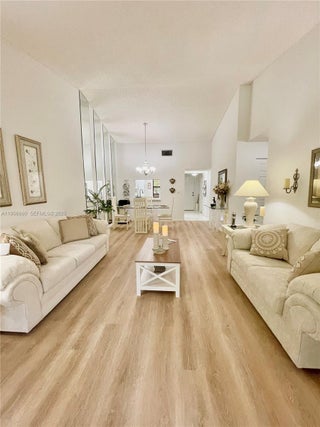 Immaculate top floor unit 2 beds 2 baths featuring vaulted ceilings & New vinyl floors throughout, spacious & bright showing pride of ownership. Newer A/C & Water Heater. Screened balcony with a peaceful water view, Washer & Dryer in unit. The community offers lots of resort style amenities such as olympic size pool, hot tub, kiddie pool, playground, basketball/ volleyball/ pickle-ball courts, theater, ballroom, billiard room & much more! 5min from the Promenade with lots of dining & shopping, 15min to the beach! Don't miss the opportunity to call this renovated condo your Home, contact me to schedule a private showing. 15% min down payment required per HOA.