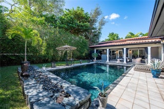 This stunning Coral Gables residence showcases elegant design and modern luxury. The home impresses with high ceilings, natural light & spacious open layout with premium finishes throughout. The gourmet kitchen flows into bright living spaces and an outdoor oasis with pool, wet bar, waterfall, fire feature & mosquito system. The oversized primary bedroom features two full bathrooms, a fireplace and an enormous walk-in closet. A showcase feature is the striking glass-enclosed wine room that stores 1,400 bottles. Smart-home automation with Sonos surround system throughout, impact windows & doors, a new roof & a backup generator make this home as technically refined as it is stylish. Walkable to dining, shopping & leisure, this residence delivers privacy, elegance and a turnkey lifestyle.