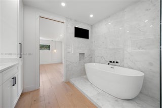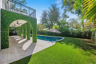 Stunningly renovated South Miami residence nestled beneath mature oak trees. This 4-bedroom, 4-bath home has been completely redone from top to bottom, featuring European oak floors, natural marble accents, and full-impact windows. The open-concept layout showcases a gourmet kitchen with Miele appliances, custom cabinetry, and beautiful finishes throughout. Every detail reflects quality and modern design. Step outside to an inviting backyard with coral stone pavers, lush greenery, and a refinished pool area perfect for entertaining or relaxing. The home also features a new roof, long private driveway, and peaceful surroundings just steps from a new neighborhood park. Offered fully renovated and ready to move in—this South Miami gem blends timeless elegance with today’s modern comforts.