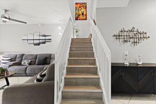 Gorgeous 3 Bed / 2.5 Bath townhouse offering over 1,400 sq. ft. of comfortable living space. This home features neutral tile flooring on the first floor and elegant wood floors upstairs. The bright, fully renovated kitchen boasts all-white cabinetry, matching Whirlpool appliances, and a modern design perfect for any home chef. Enjoy peace of mind with impact windows, a brand-new roof, and a private one-car garage with a driveway for 2 vehicles. The spacious master suite includes a large walk-in closet and a luxurious Roman tub. Full-size washer and dryer included. Community amenities feature gated entry with security cameras, two heated pools, and a playground. Pets are welcome. FHA/VA approved.