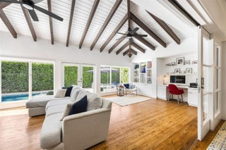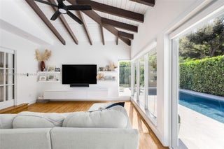 Located on a peaceful, tree-lined street in South Gables, this fully renovated 3 bed, 2 bath residence beautifully blends classic Gables charm with modern renovations. Light-filled interiors showcase an open designer kitchen with quartz counters, custom cabinetry, and premium stainless-steel appliances. A spacious family room with vaulted ceilings and exposed beams opens seamlessly to the pool terrace, creating the perfect indoor-outdoor flow. The newly built pool and lush landscaping offer complete privacy in a serene setting. With a two-car garage, impact windows, and a prime location near top schools, dining, and parks, this move-in-ready home delivers the best of Coral Gables living.
