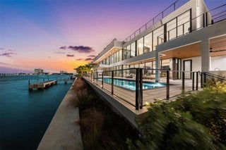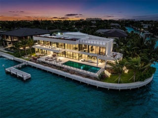 Designed by renowned architect Leo Shehtman, this modern waterfront masterpiece in gated San Souci Estates offers a rare 217 feet of open bay frontage on an oversized corner lot. Walls of glass frame sweeping views of the Miami skyline and Indian Creek. The design showcases remarkable scale, with two double-height areas and an impressive width that floods the home with light and volume. A grand salon with 22-ft ceilings opens to a sleek Dell Anno kitchen with statement island and butler’s pantry. Fully automated with Control4, the residence spans 11,162 total square feet and includes a pool, spa, rooftop terrace, media room, gym, office, staff suite, and Tesla solar integration.