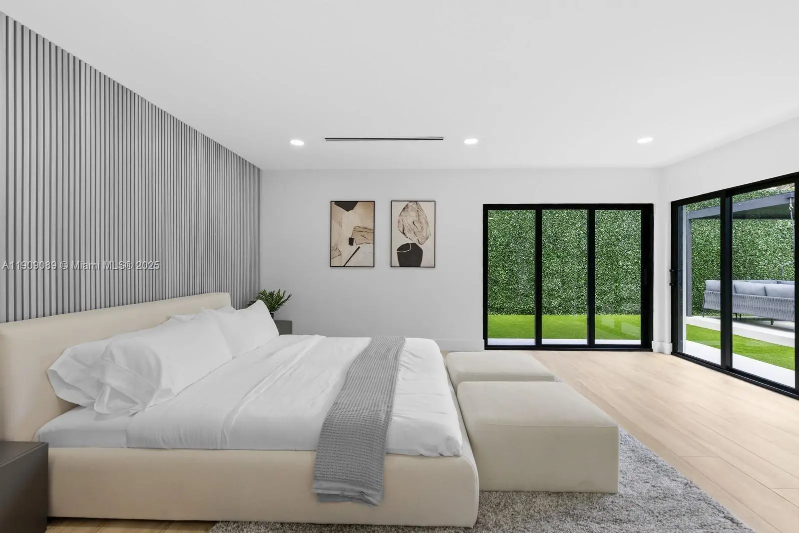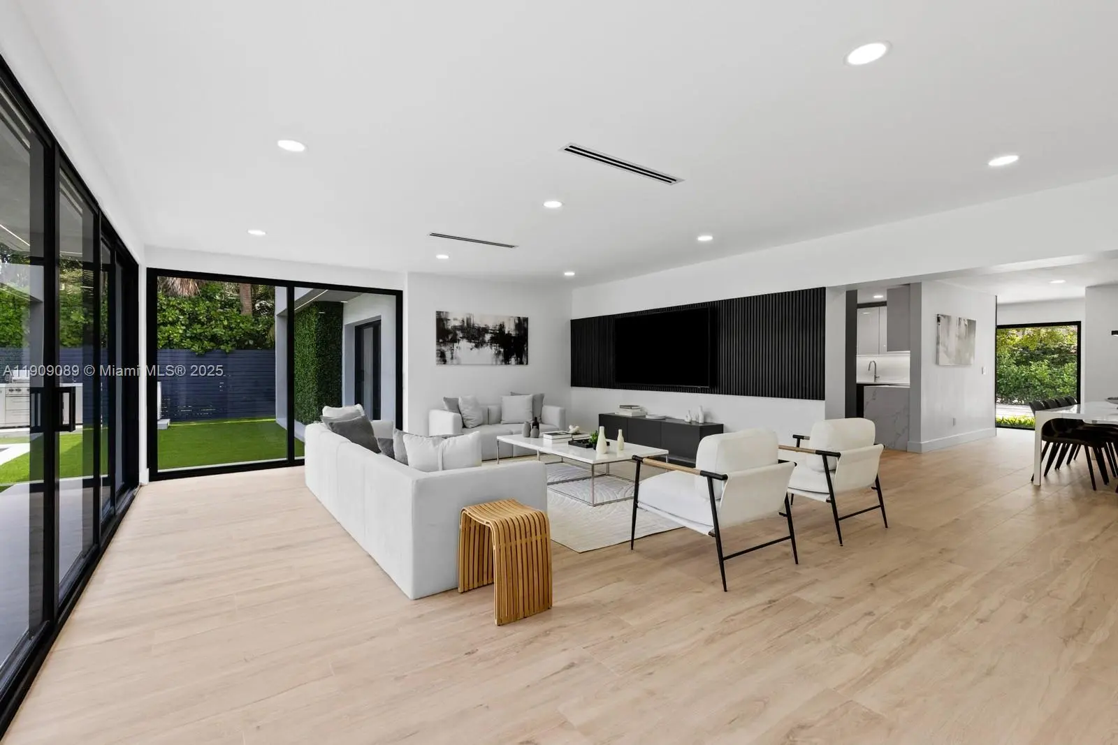 Experience Luxury living in this architectural masterpiece located in the highly coveted neighborhood of Bay Heights in Coconut Grove. This 5bed/5bath plus office has undergone a complete renovation, combining modern elegance with timeless design. Set on 11,500 sqft. lot, this home is filled with natural light and features an open-concept floor plan connecting living, dining, and outdoor spaces. The living room boasts sliding glass doors that open on all sides, epitomizing for an indoor-outdoor lifestyle. Architectural highlights include sleek LED strip lighting, lush boxwood details, and warm slatted wood accents. The private backyard is surrounded by mature landscaping, a pool, BBQ area, and pergola. Nestled in the 24/7 police-patrolled community of Bay Heights. Offered Fully Furnished.