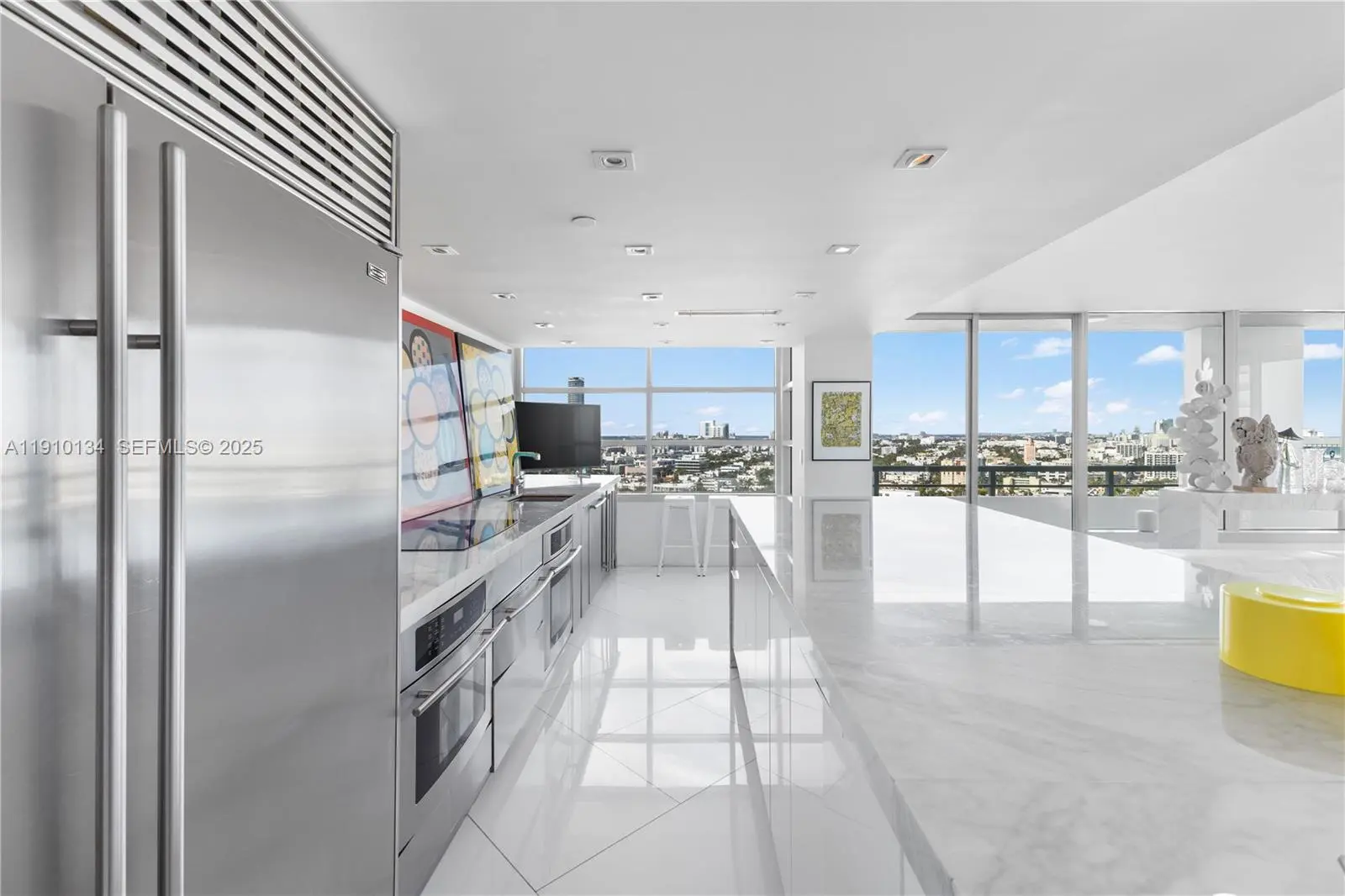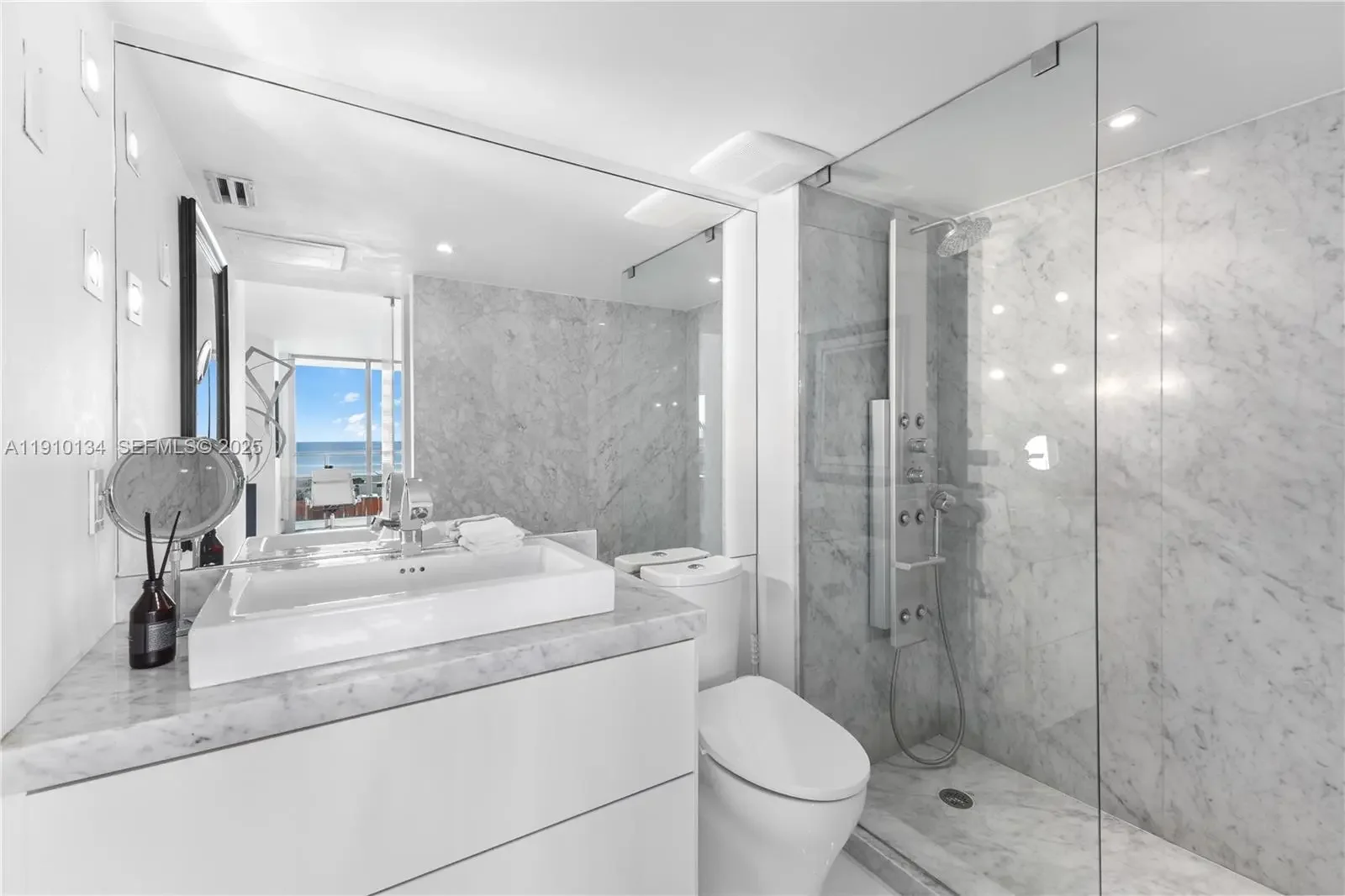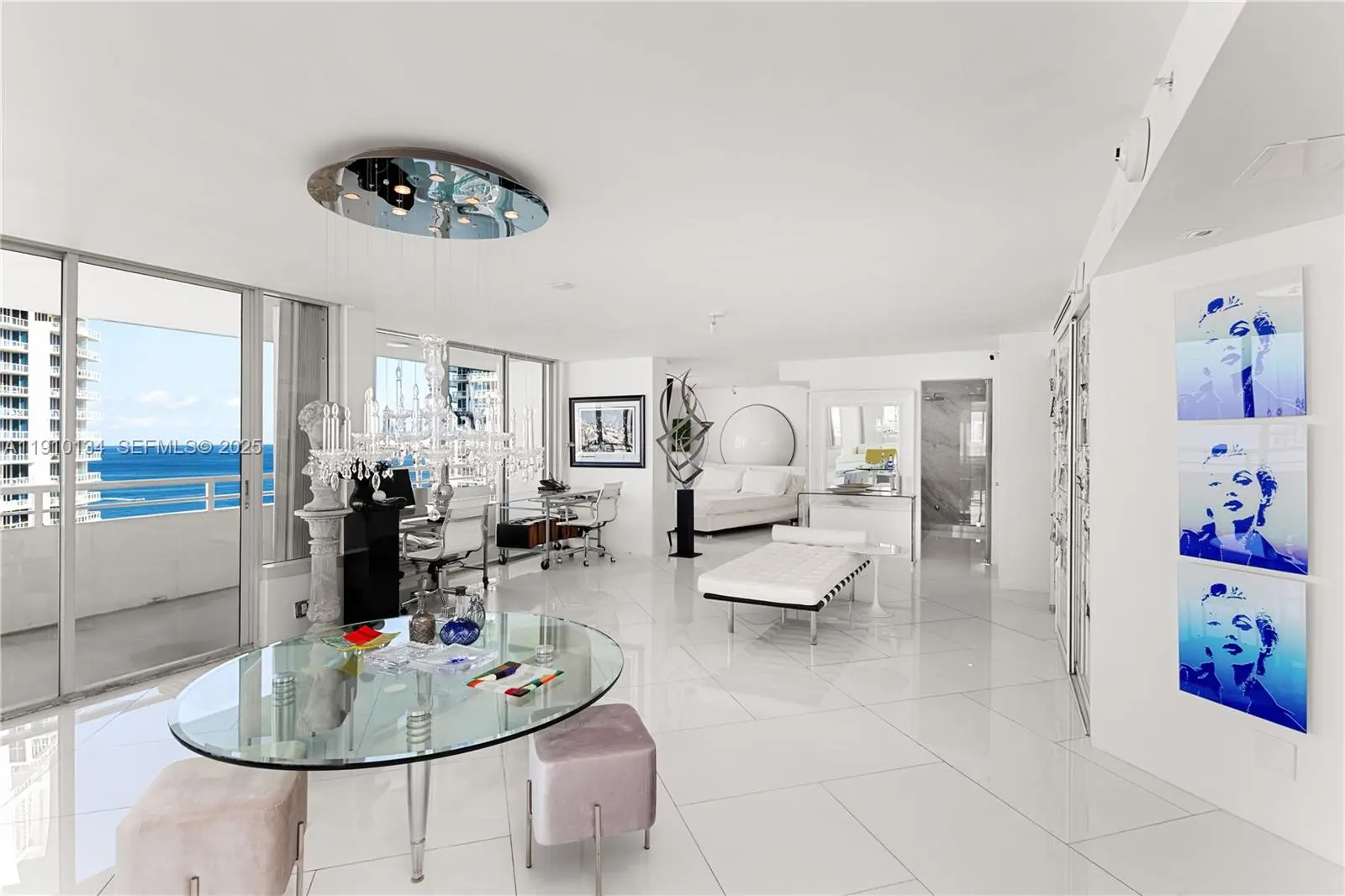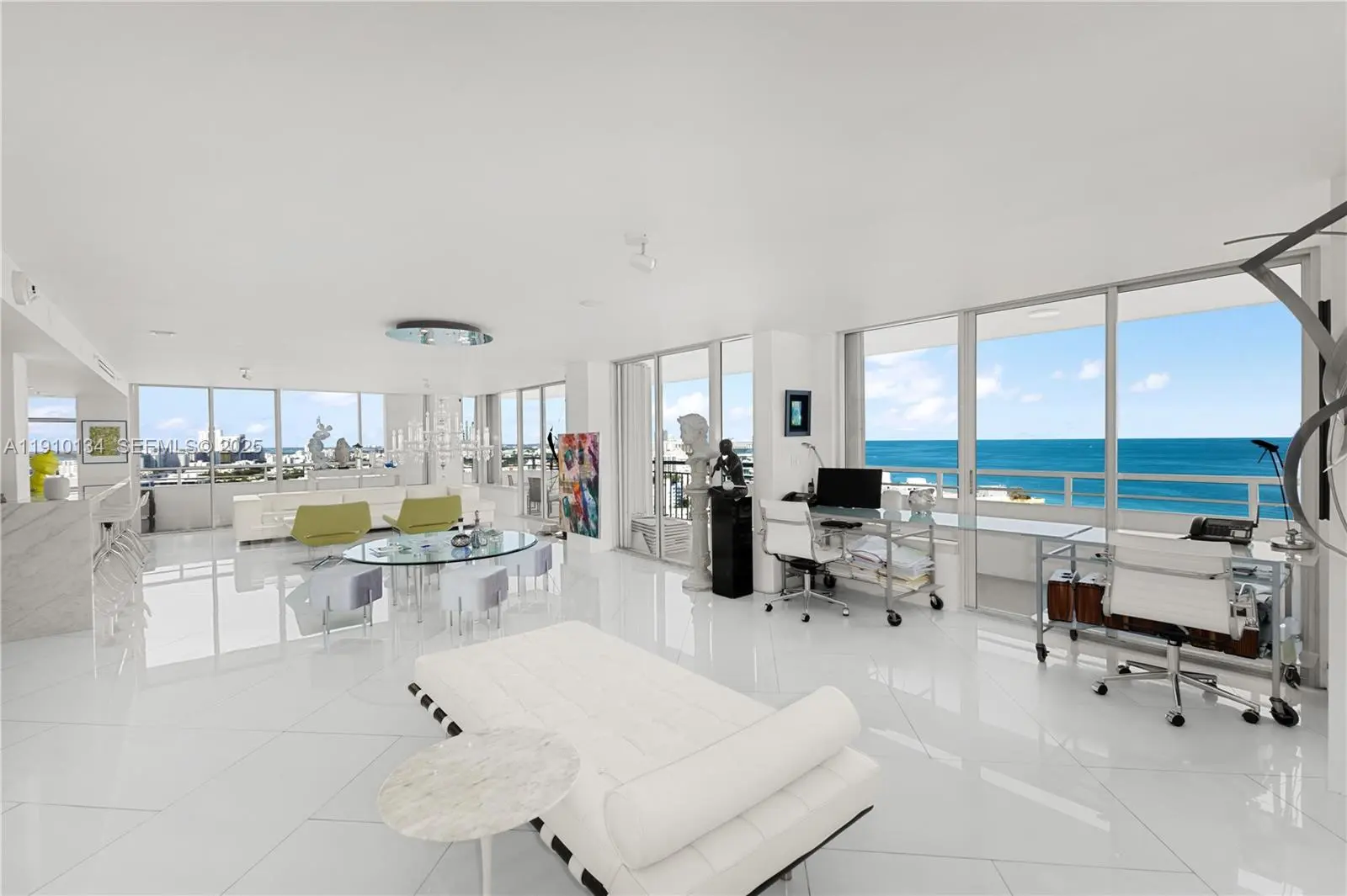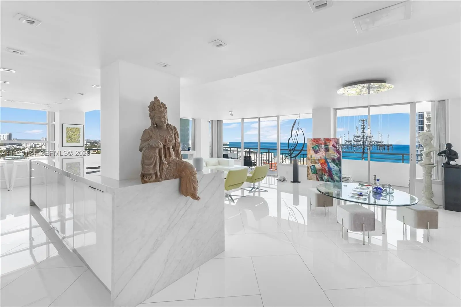 Location and Lifestyle are delivered in this breathtaking 23rd-floor corner residence in South Pointe Tower. Unparalleled direct ocean + city views through floor-to-ceiling glass windows. Every room opens to private 90 ft wraparound terrace. This designer open loft (re-imagined from a 2 bed + den) delivers a luxurious modern aesthetic with white glass flooring throughout and Carrara marble finishes. The open-concept chef’s kitchen features sleek stainless steel appliances + an impressive 15-foot Carrara marble island — perfect for entertaining. The residence boasts 2.5 spa-inspired Carrara marble bathrooms and includes two indoor parking spaces. Building just completed a $30 million master renovation (paid in full). Private 2 car garage available seperately - perfect for your exotic cars. This captivating open loft-design is easily converted back to a traditonal 2 bedroom + den layout and we have available contractors upon request.