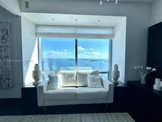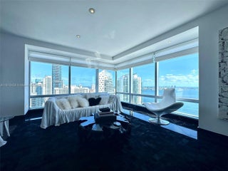 The unit has panoramic water views, custom furniture, and the owner provides property management services.