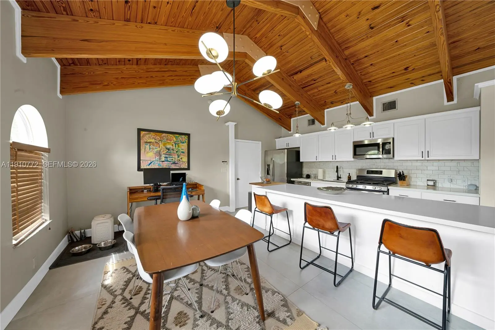 Tastefully updated 3-bedroom, 2-bathroom single-family home with a 1-car garage and a desirable split floor plan designed for privacy and comfortable living, featuring exposed wood ceilings that add warmth and character, hardwood floors throughout, and a gourmet kitchen with stainless steel appliances; both bathrooms are updated with clean, modern finishes, and the home opens to a private outdoor retreat complete with a sparkling pool and ample space for relaxing or entertaining. The Owner covers pool maintenance, landscaping, and alarm service for added convenience & value.