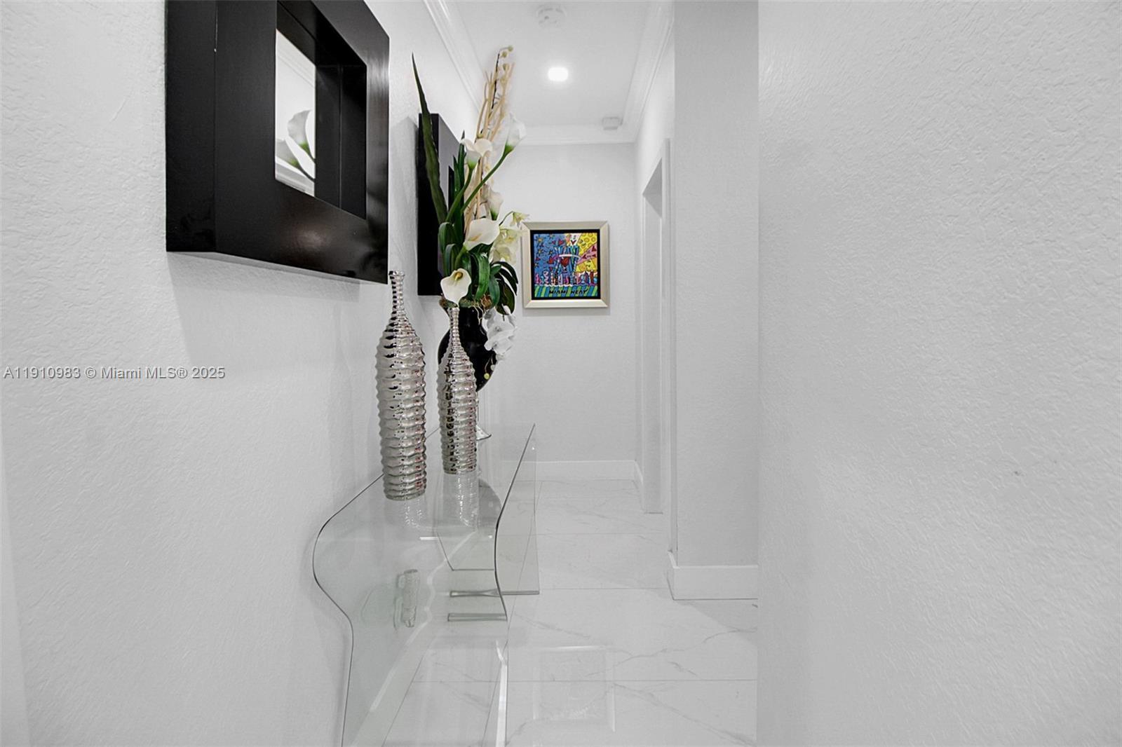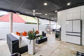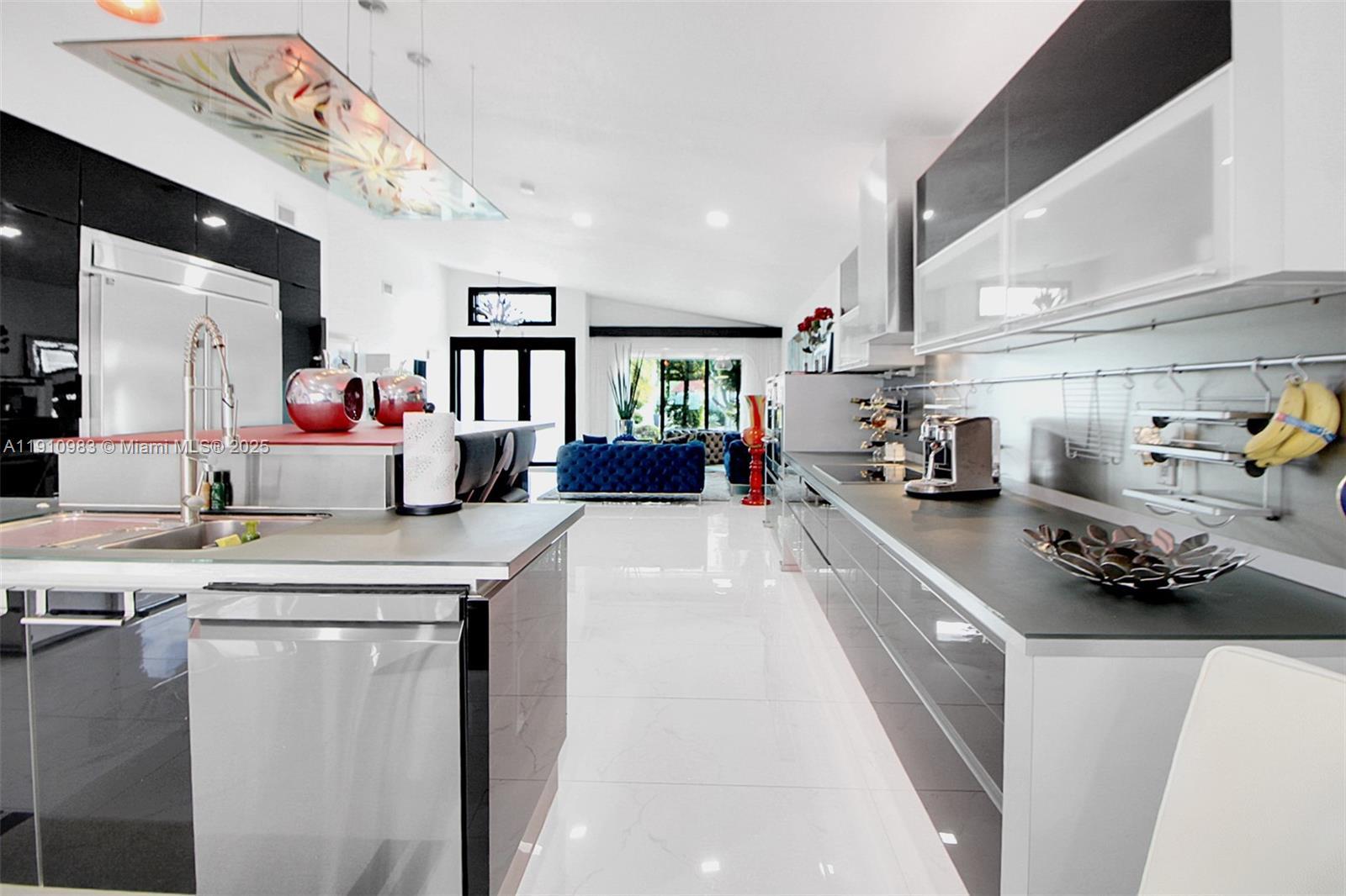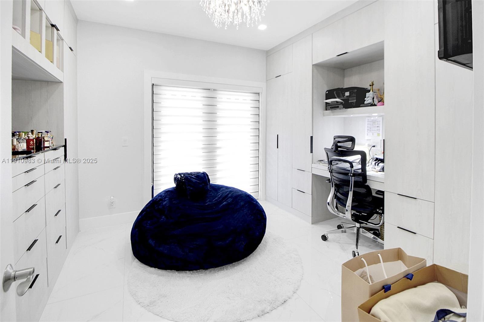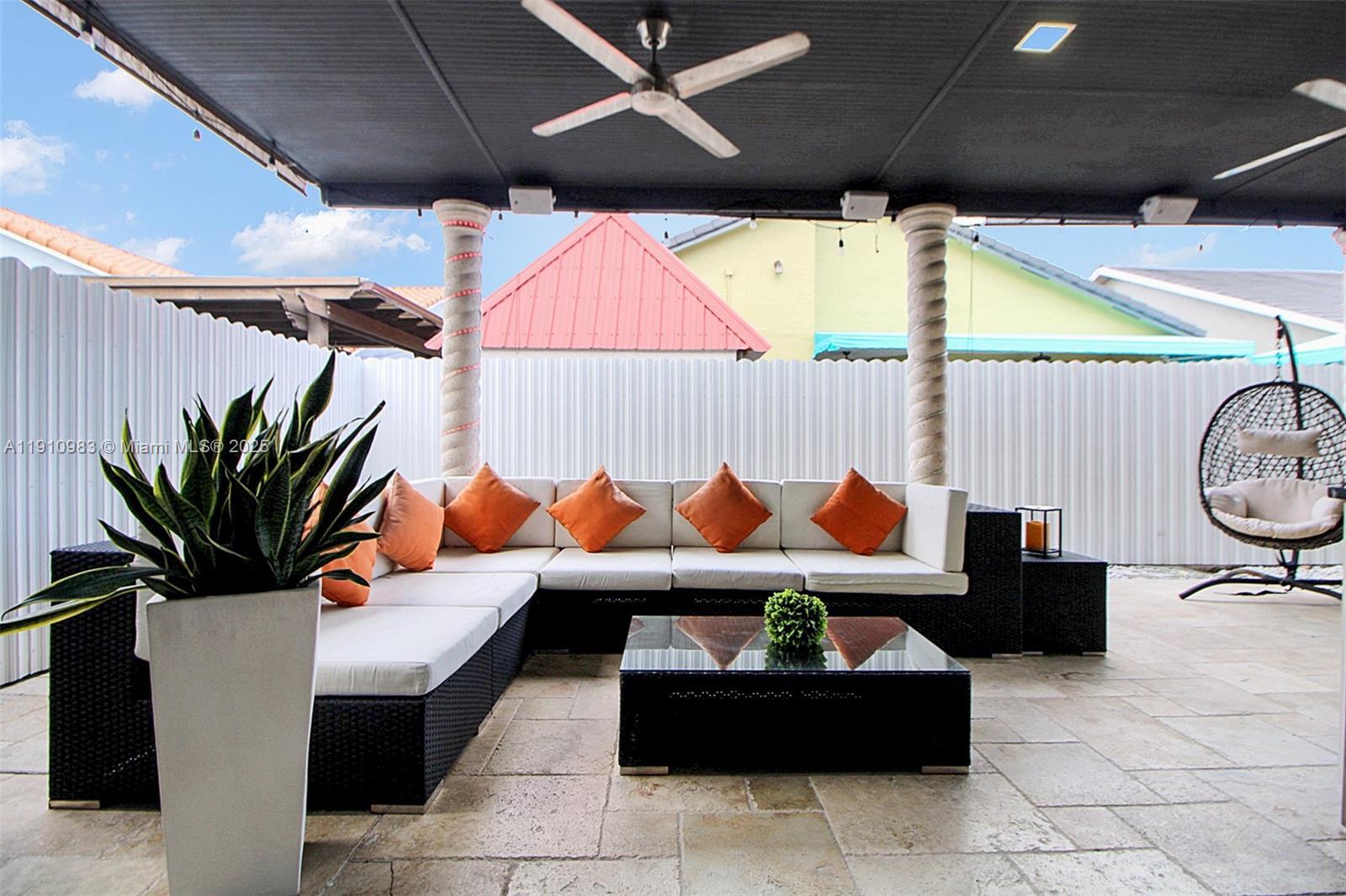 A perfect blend of luxury, comfort, and resort living. Stunning modern residence in Miami Lakes. Excellent 3-bedroom, 2-bathroom home, no HOA fees, and a prime location. Open concept. Garage converted into a convenient apartment. 24x48 polished Naos tile flooring, 5" baseboards, marble bathrooms with a jacuzzi in the master bathroom, glass doors, decorative shower, modern vanity and toilet, dimmable lighting. California-style closets, walk-in closet in the master bedroom, high-end appliances. The heart of the home is the spacious kitchen, overlooking the family and dining areas. Large island counter and LED under-cabinet lighting. Mielle oven, coffee maker with built-in grinder, ceramic cooktop, glass countertops, drawers with organizers, and much more. Roof in good condition. S