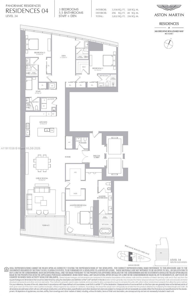Experience luxury living in this brand-new unit at the prestigious Aston Martin Residences Miami. This exquisite 4 Bedroom + Staff 5.5-bathroom residence defines sophistication and elegance. The design embodies the iconic style of the automotive brand, enhanced by stunning views of Biscayne Bay and Miami Beach from floor-to-ceiling windows and a spacious balcony. Enjoy the Sky Amenities level featuring 42,500 s.f. of luxury amenities, including an infinity pool, spa, private movie theater, and state-of-the-art gym. Inside, the unit boasts exceptional craftsmanship, with a gourmet kitchen outfitted with Gaggenau appliances, marble floors, and expansive windows that fill the space with natural light. The exclusive address offers a refined lifestyle of luxury and convenience.