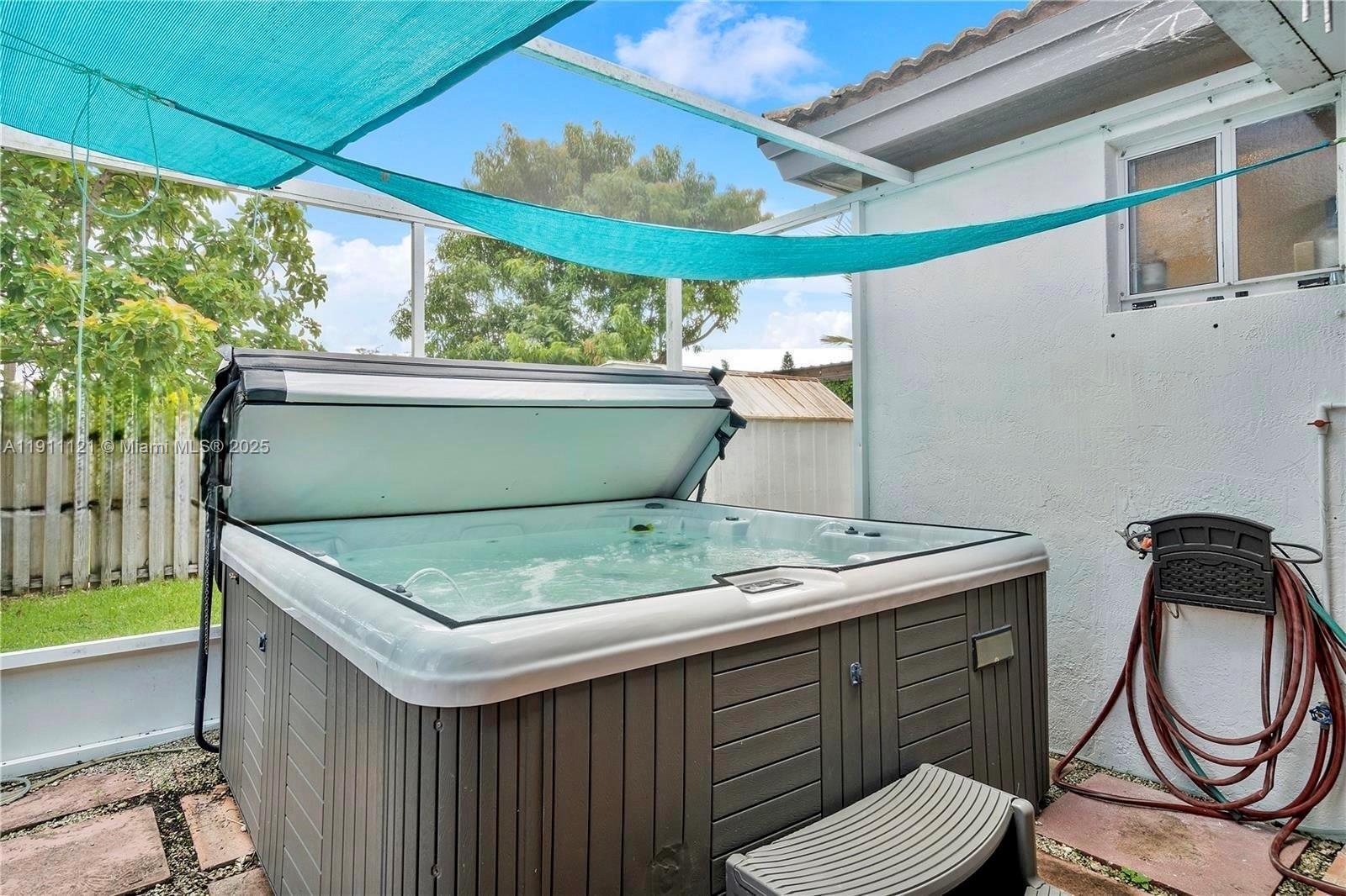 This beautiful Mediterranean-style home in Miami features 4 bedrooms, 2 full bathrooms, and a fully remodeled modern kitchen and bathroom. NO HOA. Located just 10 minutes from South Land Mall and 20 minutes from BlackPoint Marina, it offers both comfort and convenience. Inside, sleek tile floors provide easy maintenance. Enjoy seamless indoor-outdoor living with a spacious screened patio, a beautiful mango tree, and a Jacuzzi. The large yard offers endless possibilities. The converted garage serves as an independent living space, currently rented, providing extra income. It is conveniently located close to parks, schools, and shopping.