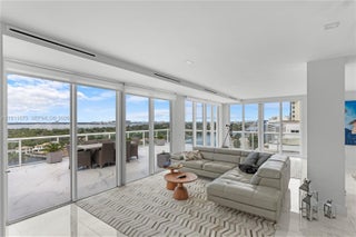 An address that captures every view and every moment. Experience elevated coastal living in this one-of-a-kind just shy of 3,000 square foot penthouse at Carriage Club South. Spanning the entire northeast corner of the top floor, this residence offers sweeping ocean, inter-coastal and downtown skyline views from the expansive 970 square foot wraparound terrace. Designed for effortless indoor-outdoor living, it features a sleek modern kitchen with Wolf and Sub-Zero appliances with spacious living/dining areas ideal for entertaining. The primary suite offers a spa-inspired bath and custom walk-in closet. PH1 is a rare offering and the crown jewel of the building, it defines luxury, privacy, and sophistication right on the sand.