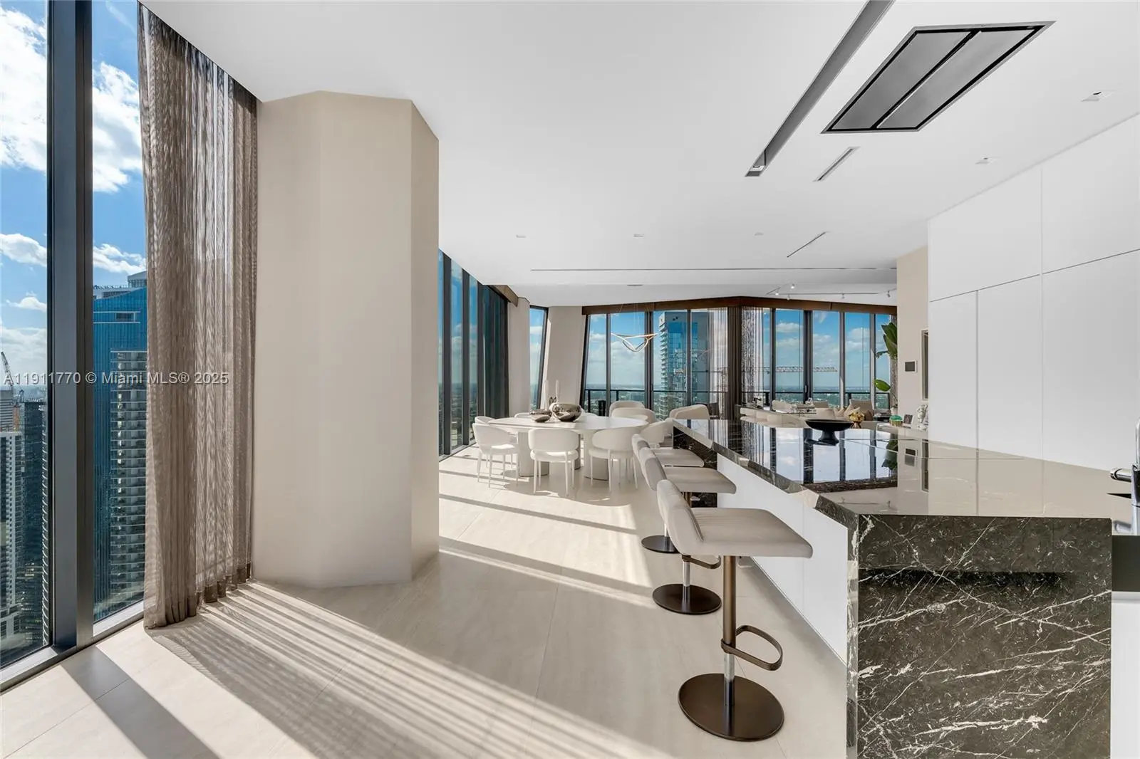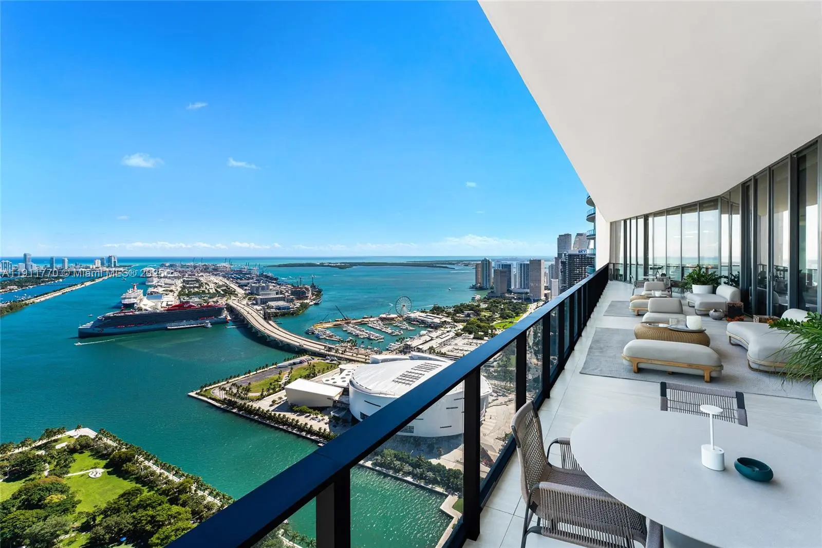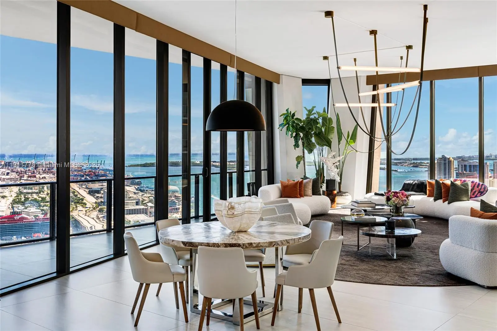 Experience the pinnacle of ultra-luxury in this redesigned penthouse at One Thousand Museum by Zaha Hadid. Spanning 10,338 SF w/6BR/6.5BA, 2 expertly combined units encompass the entire 51st floor w/360° sunrise-to-sunset views of Biscayne Bay, Miami Beach, Ocean, & city skyline. A private elevator opens to a dramatic Great Room w/spacious living & entertainment areas, a custom bar, & expansive 1,200 SF bayfront terrace. Features exquisite stone floors, designer millwork, wallpapers & lighting. Highlights include: Sleek chef’s kitchen w/Gaggenau appliances & butler’s pantry, family/media room w/sunset terrace, movie theater, & a luxurious principal suite w/dual walk-in closets, spa bath, & terrace access. 5 additional BRs w/ensuite baths, includes staff BR, 4-car parking. Lux amenities.
