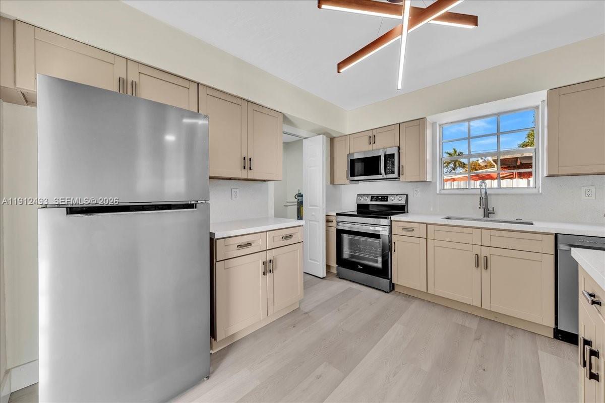 BEAUTIFUL 1 STORY COMPLETELY RENOVATED HOME.DON’T MISS THIS INCREDIBLE OPPORTUNITY TO OWN THIS GORGEOUS 3/2 PROPERTY. NEW ROOF ,NEWER CUSTOM KITCHEN WITH QUARTZ COUNTERTOPS,NEW STAINLESS STEEL APPLIANCES.LOCATED IN A FAMILY ORIENTED NEIGHBORHOOD. NEWER FEATURES INCLUDE LAUNDRY ROOM, MODERN GARDEN DESING BACKYARD,MAKING YOUR OUT DOOR AREA UNIQUELY ATTRACTIVE AND RELAXING.PROPERTY FRESHLY PAINTED, BASEBOARDS THROUGHOUT, NEW LAMINATED WATER PROOF VINYL FLOORS THROUGHOUT, HOME FULLY ENCLOSED ,THE DRIVEWAY FEATURES A GENTLE CURVE LEADING TO A GENEROUS CARPORT. PROVIDING ADDED COMFORT AND PROTECTION FOR YOUR VEHICLE DURING RAINY WEATHER. CENTRALLY LOCATED NEAR HARD ROCK STADIUM WITH EASY ACCESS TO MAJOR HIGHWAYS, SHOPPINGS AND DININGS.!NO HOA,READY TO MOVE IN.!