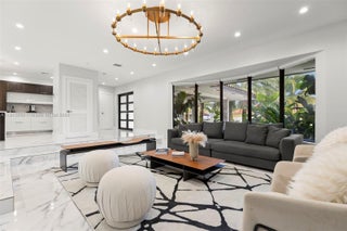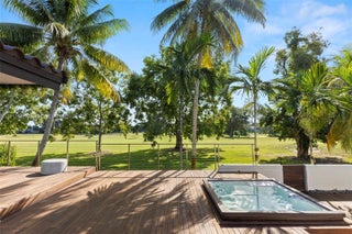 Unique and fully renovated 4/3 tri-level home in the guard-gated Country Club of Miami Estates with 24-hour security. Filled with natural light, this home features panoramic golf course views, a resort-style heated pool, spa, and a teak deck with heated built-in hot tub. Interior highlights include a Jenn-Air kitchen with paneled appliances, quartz countertops with large island, glass-enclosed wine display, and an impressive entertainment/theatre room with full bar and cabana bath access. The downstairs primary suite offers a spa-style bath with soaking tub and private garden views. Upstairs includes a balcony bedroom with golf views and a walk-in closet room that can convert back to a bedroom. Roof & AC 2016. Impact windows/doors and upgraded landscaping complete this exceptional home.