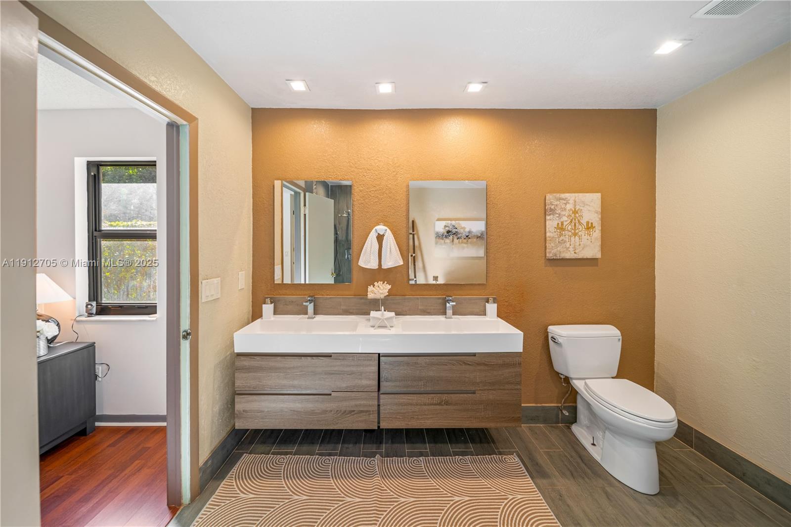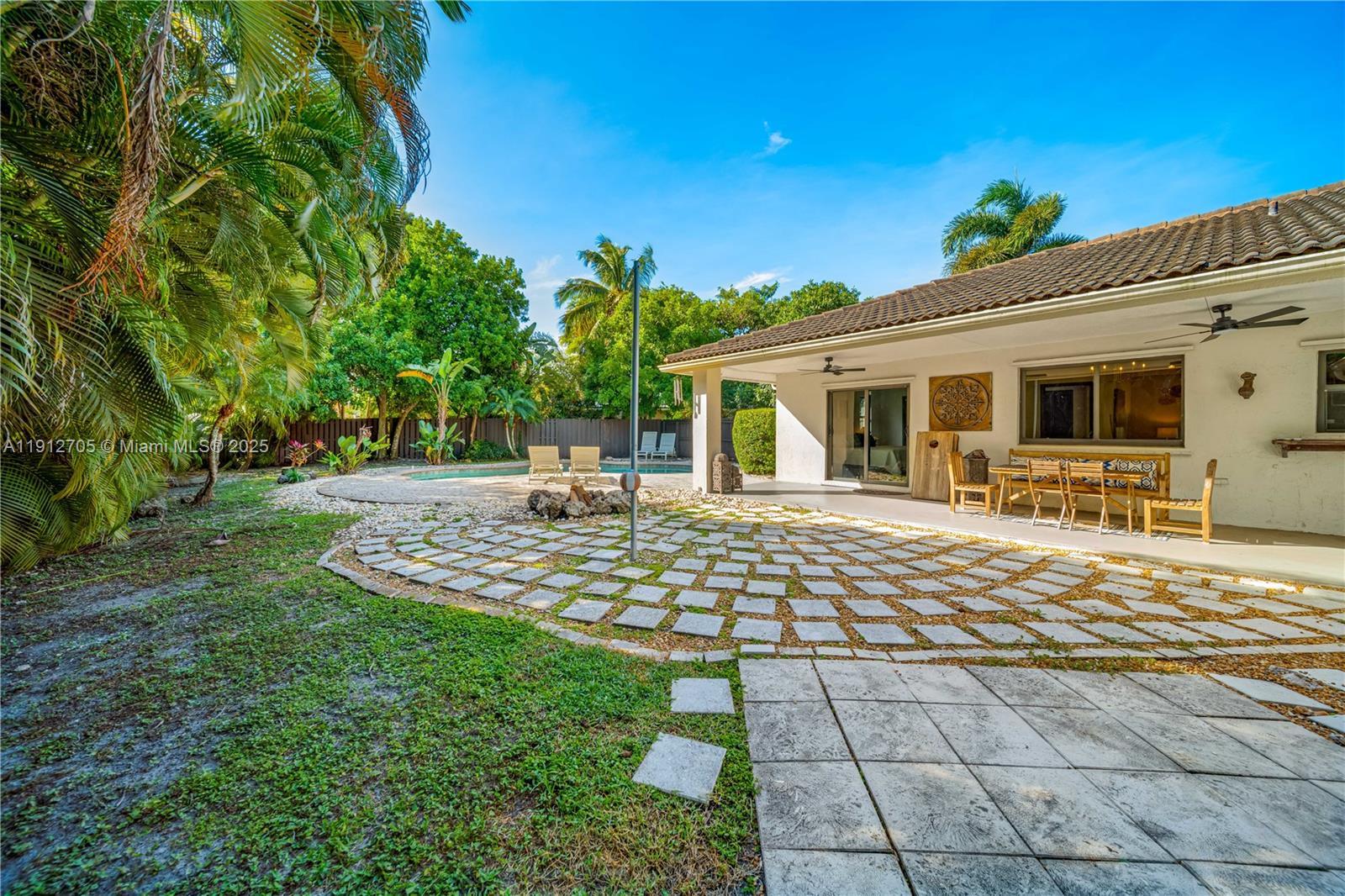 Stunning pool home located on an oversize cul-de-sac lot! Completely renovated Italian modern kitchen with gorgeous custom wood cabinets, stainless appliances, & breakfast bar open to the huge family room. Primary bedroom with direct access to pool & patio features a massive bathroom with a double vanity, free-standing elegant tub, and walk-in shower. Renovated guest bathroom. Whole-house hurricane protection with high impact windows and sliding doors. The back yard is a dream come true with its free form pool and surrounding patio, expansive designed paver play area with fire pit, covered patio, and lush privacy landscaping. Side yard offers space to park your boat. Excellent schools. Easy access to highways, shopping, theater, restaurants, hospitals. Low $30 monthly maintenance.