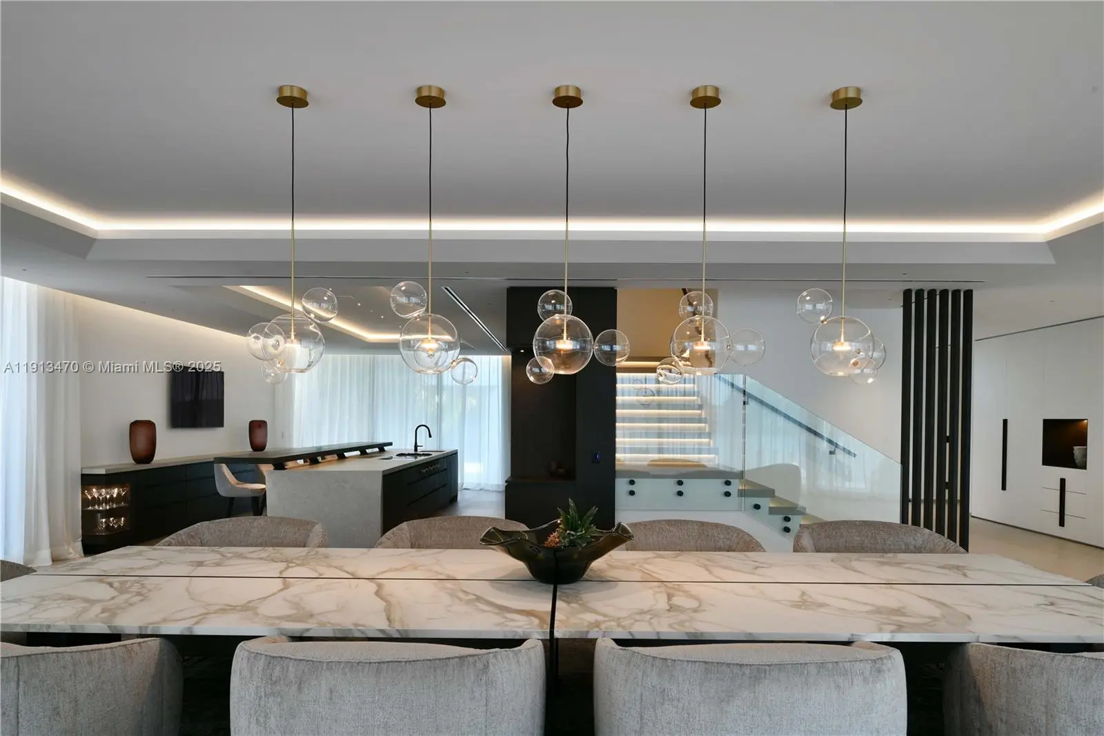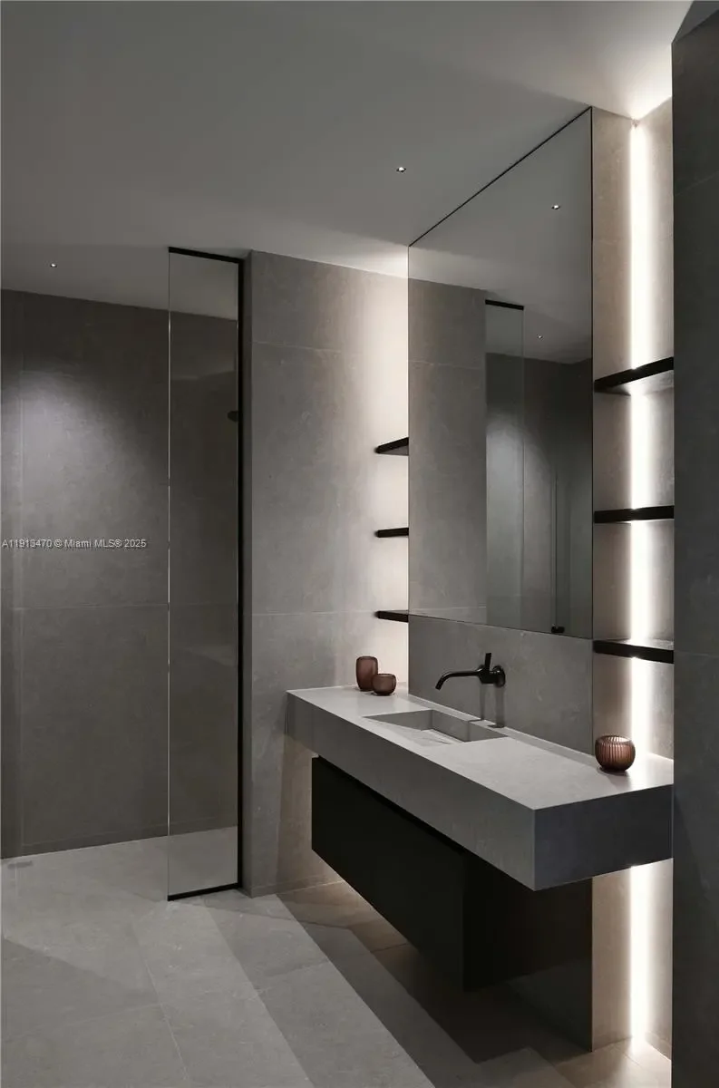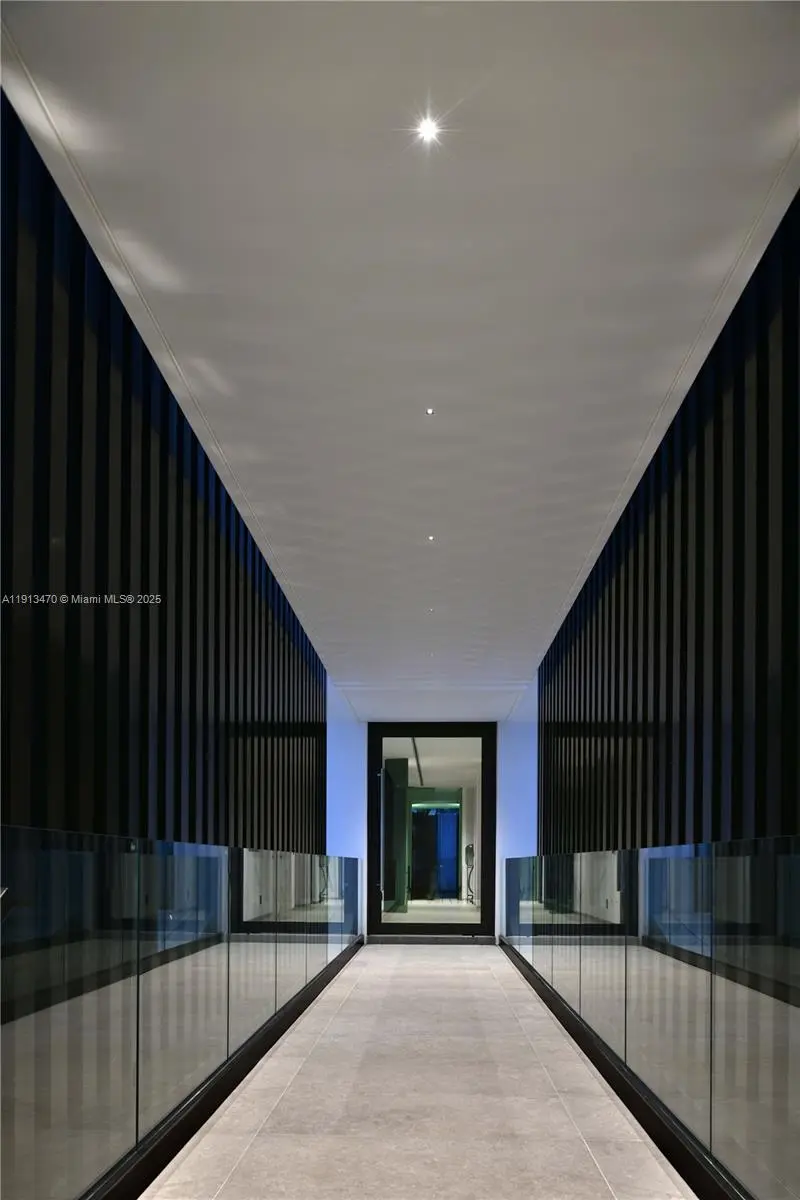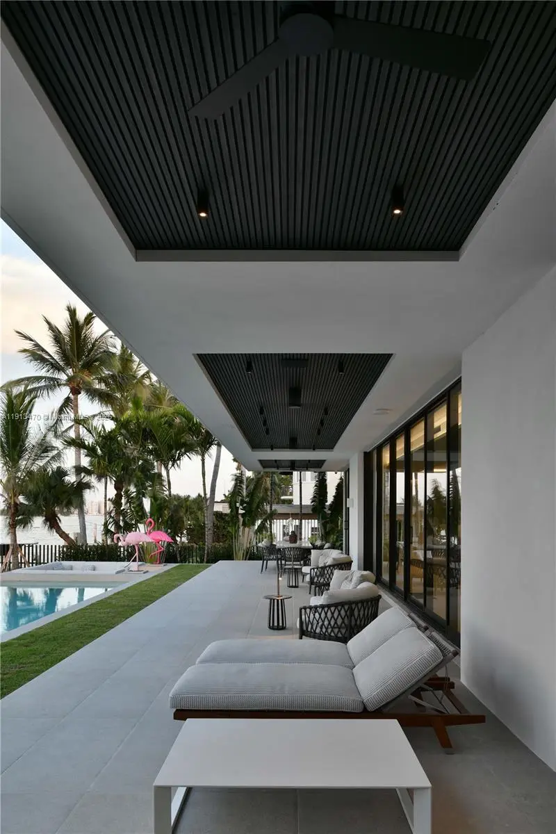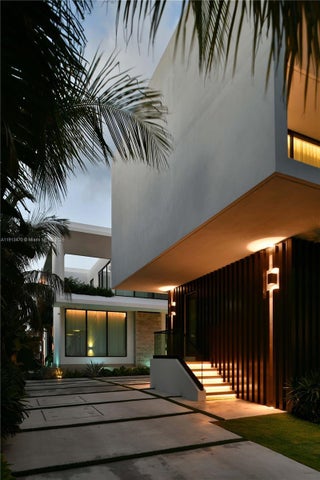 A true architectural masterpiece, this newly completed waterfront residence on the exclusive, guard-gated Hibiscus Island embodies the pinnacle of refined Miami Beach living. Designed by renowned architect Kobi Karp and curated by European luxury design firm AED Planung, this contemporary estate offers 7,869 SF under air (9,178 SF total) with 6 beds, 7.5 baths on a 90-ft bayfront lot with sweeping views of the Bay, Miami, and Miami Beach. The open floor plan flows seamlessly to a resort-style outdoor area featuring an infinity-edge pool/spa, covered dining pavilion, summer kitchen, sunken lounge next to pool, and private dock. Other notable features: home automation system, elevator, movie room, gym, wine fridge, extensive rooftop terrace, separate guest house, and whole home generator.