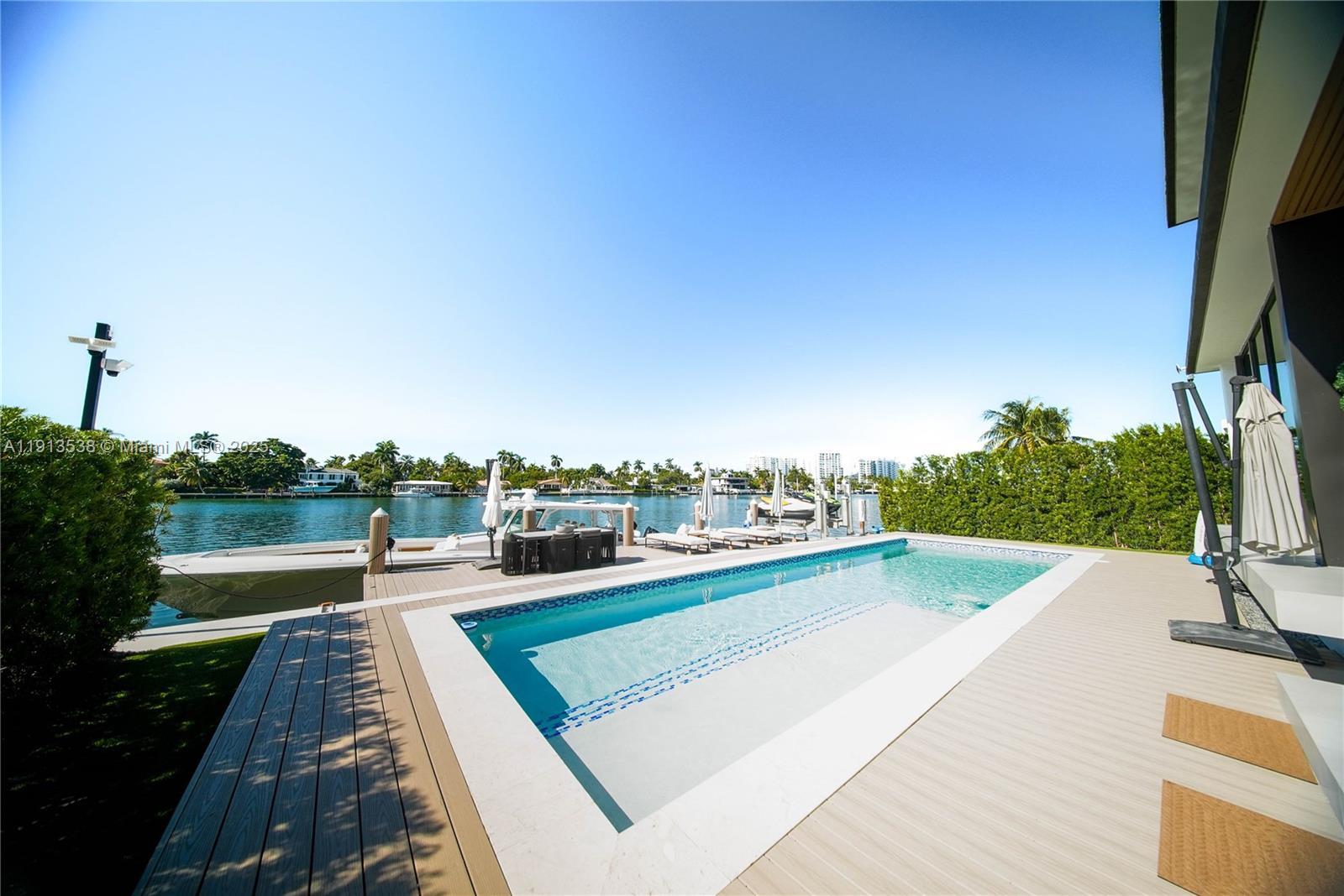Discover unparalleled waterfront luxury in this 2022 modern masterpiece showcasing mesmerizing Biscayne Bay and Miami skyline views. The residence features soaring double-height ceilings, expansive glass walls, a chef’s gourmet kitchen, and a serene bayfront primary suite. Enjoy six ensuite guest rooms, resort-style pool, summer kitchen, rooftop terrace, and 60-ft dock. Located in North Bay Village