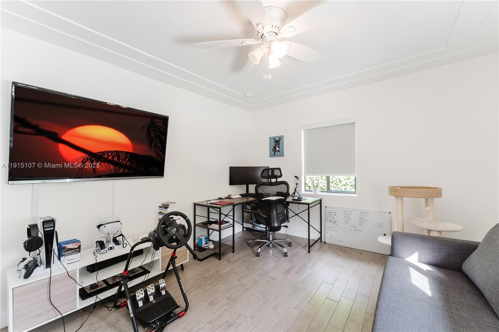 Welcome to your perfect Florida home! This move-in-ready 4-bedroom, 2-bathroom single-family residence boasts a bright open floor plan with natural light, a modern kitchen featuring stainless steel appliances, quartz counters, and an island breakfast bar. The primary suite offers a spa-like en-suite bath with walk-in shower, double vanity, and large closet. Three additional bedrooms provide versatile space for guests, offices, or gaming, with ceiling fans. Unwind in the cozy living area and sliding doors to a private backyard. Features include ceramic flooring, a brand-new driveway for ample parking, and proximity to schools, shopping, and attractions.