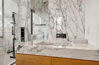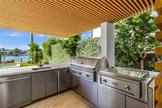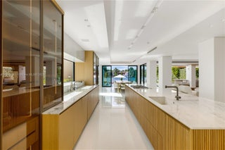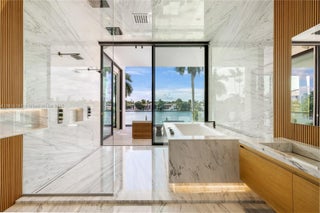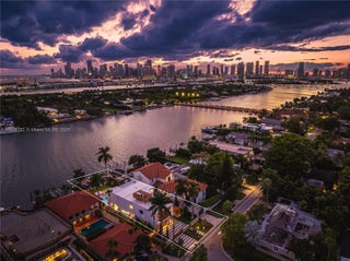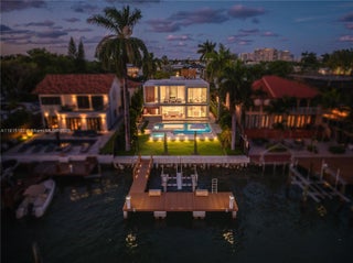 Modern waterfront retreat on gated Hibiscus Island, this residence blends architectural drama with refined comfort & wellness-driven design. Beyond a 23ft steel entry, light-filled living spaces open through telescopic glass walls to sweeping skyline views & spectacular sunsets. The great room centers on a stone fireplace, while the chef’s kitchen features marble & fluted oak finishes, cooking island, illuminated wine wall, Tyent hydrogen system & Control4 automation. Upstairs, a floating staircase leads to 4 beds, including a primary suite with dual lounges, custom dressing room & a spa bath with cold plunge & UV sauna. Outdoors, southern exposure sets a resort tone with a sleek pool & spa, covered lounge, summer kitchen, sunken firepit, 60' of water frontage & reverse-osmosis filtration