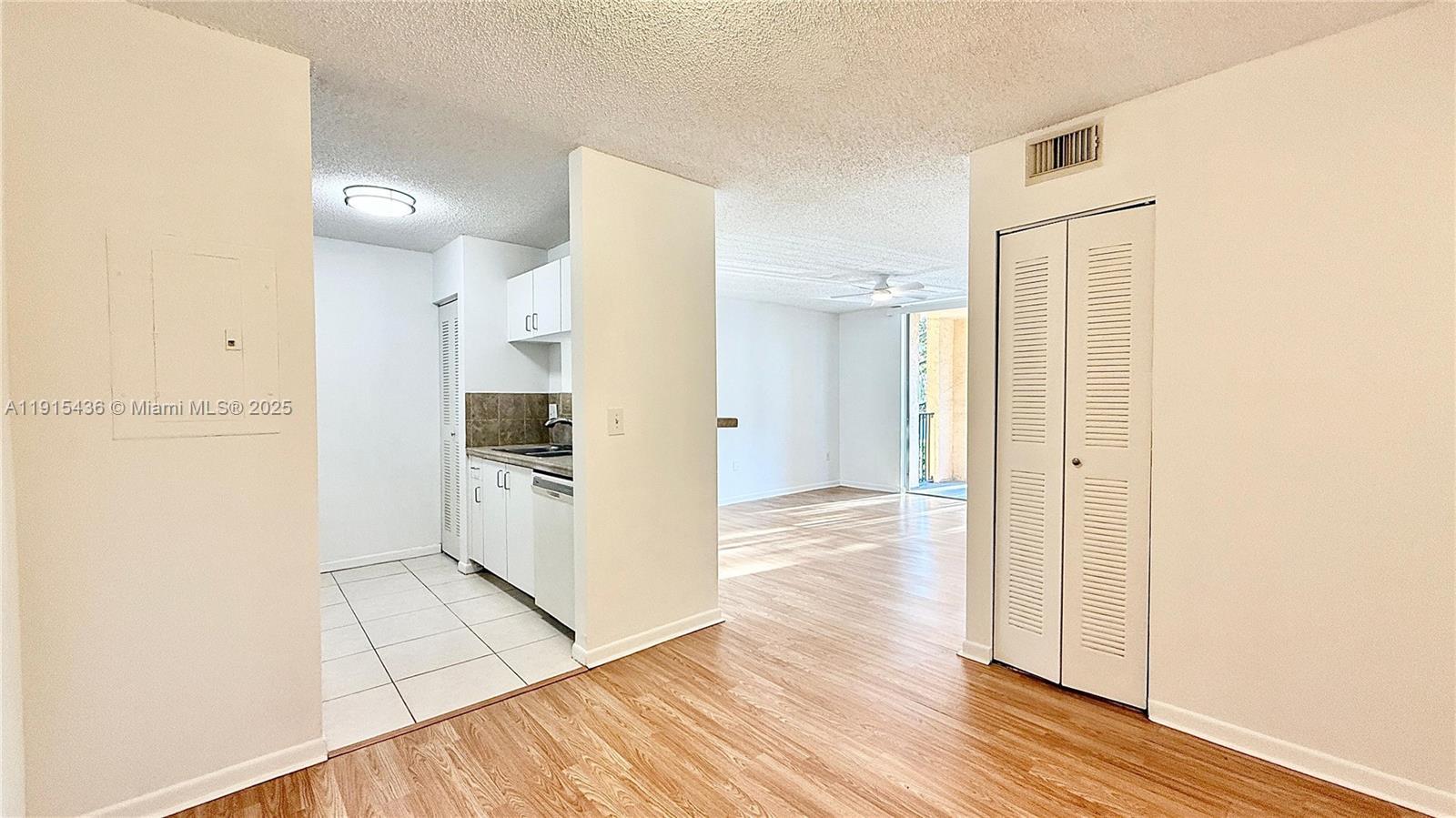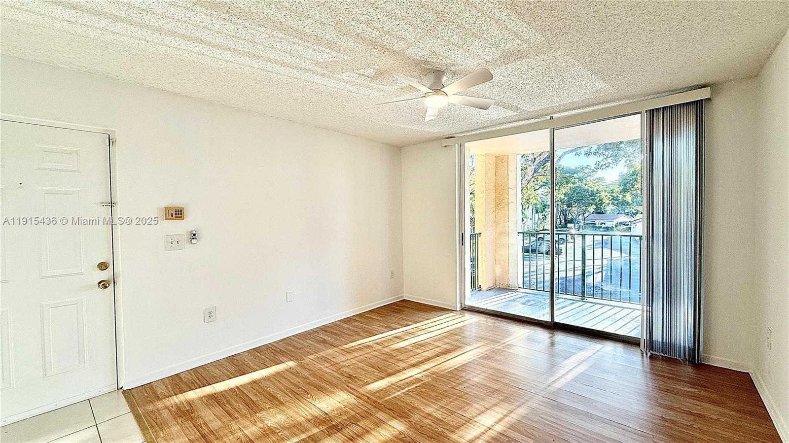 Bright and beautifully maintained 1-bedroom, 1-bath condo offering exceptional natural light and a very comfortable layout. Features include wood-laminate floors throughout, freshly painted white walls, and a brand-new air-conditioning system. The open kitchen provides generous cabinet space and a functional design ideal for everyday living. The unit also includes in-home laundry and a private balcony perfect for relaxing outdoors. Located within Milano Condominiums, a secure gated community with a clubhouse, fitness center, swimming pool, children’s play area, tennis courts, walking paths, and multiple amenities designed for an enjoyable, convenient, and well-rounded lifestyle. Assigned parking and great access to main roads complete this offering Near shops and dining options.