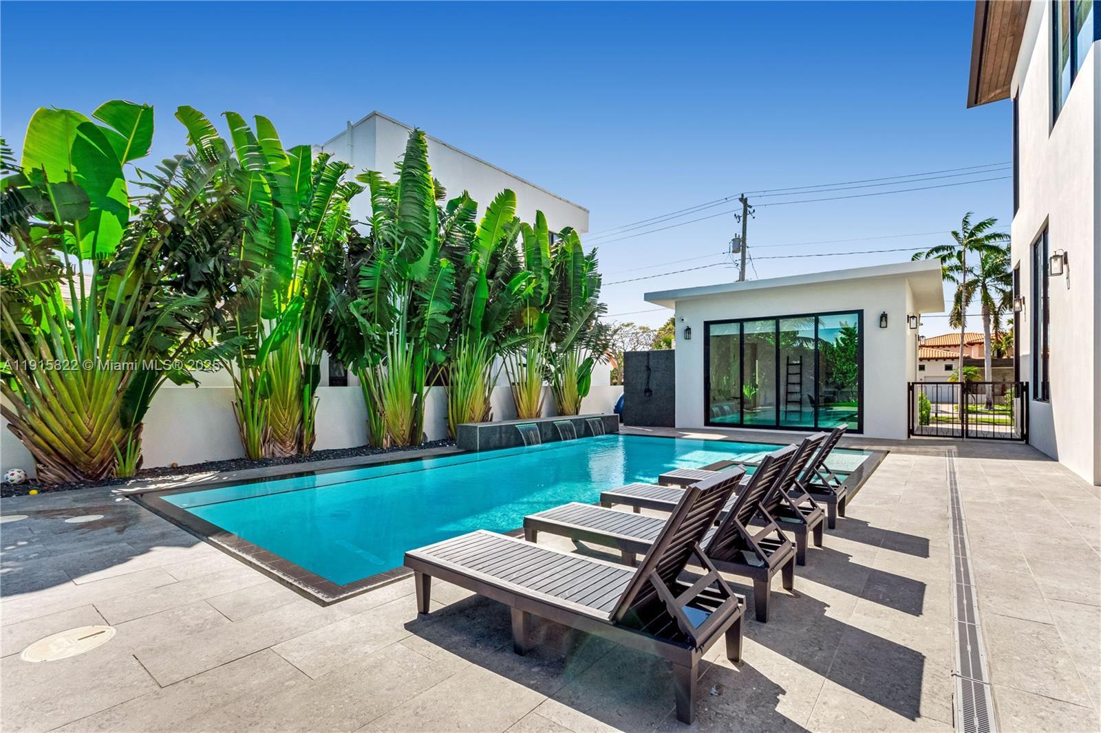 Experience the epitome of luxury living at 9045 Hawthorne Avenue, an architectural masterpiece in Surfside, FL. Constructed in 2025, this expansive 6,222 square-foot residence sits on an impressive and rare 11,200-square-foot double lot, offering an unparalleled lifestyle. Step inside to discover 7 spacious bedrooms and 6.5 meticulously designed bathrooms. The primary ensuite is a sanctuary, featuring separate vanities, a steam shower, sauna and a cold plunge. The chef's kosher kitchen is a culinary dream, equipped with a 6-burner double gas stove by Wolf, two Miele dishwashers, double sink and a 72-inch Sub-Zero refrigerator, complemented by a large pantry. Entertain effortlessly with a saltwater pool and jacuzzi, a large cabana, and a barbecue area. The home boasts a modern sound system with Sonos speakers throughout, ensuring a seamless audio experience. High ceilings, recessed lighting, and tile floors add to the home's contemporary elegance. Practical amenities include an in-house generator, a 2-car garage with the potential to add two more with a lift and 4 more spots on the double driveway, a metal roof and high end impact windows and doors. Enjoy privacy with a fenced private yard, multiple private terraces, and a pool house. Additional features include a wet bar, soundproof windows, cameras, video intercom, and central air conditioning and heating. This home is a true Surfside gem, offering sophistication and comfort at every turn. A rare find!