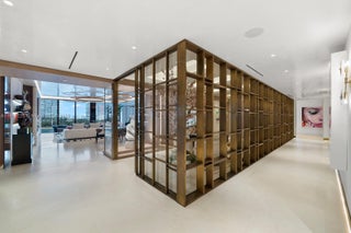 This elegantly designed 4-bedroom, 4.5-bath residence at Palazzo Della Luna offers 4,904 SF of refined interiors and a 996 SF terrace, totaling 5,900 SF of luxurious living space. Fully furnished with an exceptional collection from Minotti, Henge lighting, Tracey Glover, the home is turnkey and curated to perfection. A private elevator opens into a sophisticated foyer that leads to an expansive great room with floor-to-ceiling glass and beautifully proportioned living and dining spaces. The East center-stack layout provides a harmonious flow throughout the home, while the terrace offers beautiful views of the ocean and Government Cut, creating an elegant backdrop morning to evening. The Boffi-designed chef’s kitchen is a showcase of craftsmanship and functionality, equipped with top-of-the-line Miele and Sub-Zero appliances, sleek custom cabinetry, and exquisite stonework. The private principal suite is a serene retreat featuring a cozy sitting area, dual walk-in closets, and direct water views. The spa-caliber bathroom is luxuriously appointed with a book-matched Carrara marble rain shower, a sculptural soaking tub, and refined designer fixtures. Palazzo Del Luna delivers exceptional amenities including 24-hour concierge, valet, private pools, fitness center, beauty salon, children’s play spaces, and access to Fisher Island’s exclusive lifestyle—private beach club, golf, spa, tennis center, fine dining, and more.