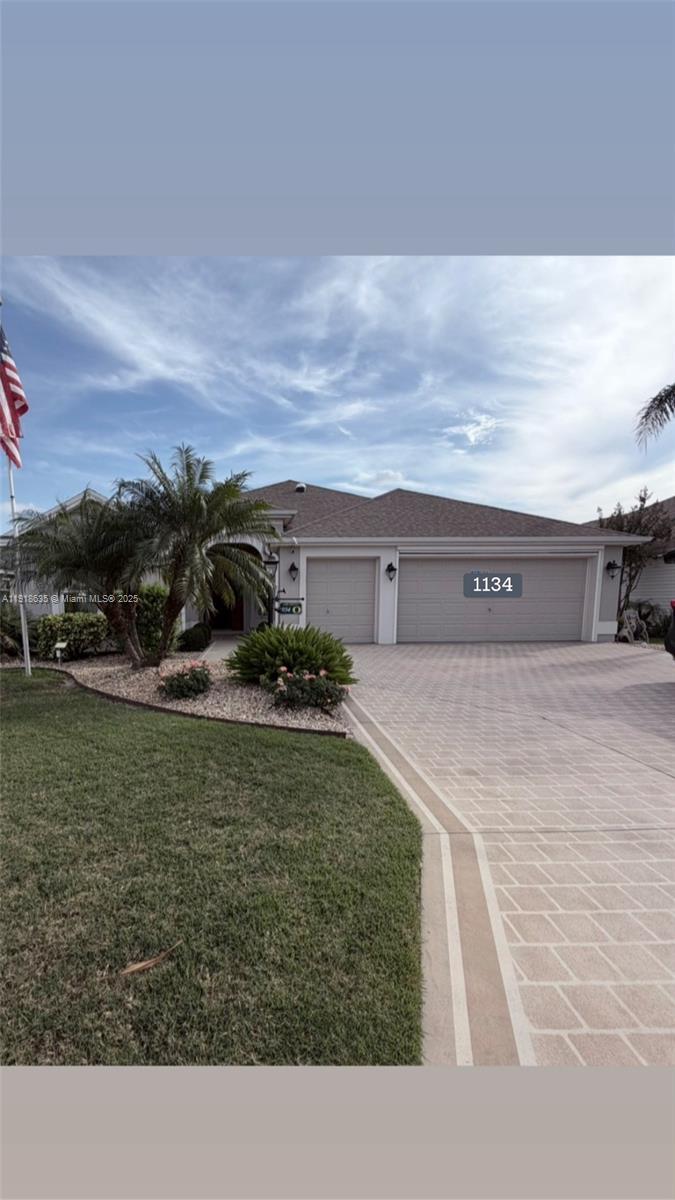 Immaculate 3/2 'Begonia Designer Home' Loaded with extras! 2700+/sf finished garage epoxy floor & pull-down stairs to garage attic-storage. Artistic-driveway. Paver Brick BBQ Patio in rear. Large Open Living Rm. area. Oversized Primary BR with coffered ceiling, Large easy-entry, walk-in Shower. 2nd Bath has an enclosed full Tub. Luxury Vinyl Flooring + Ceramic Tile + Carpeted BR. Upgraded appliances & W/D. Extra storage cabinetry throughout. Open concept, spacious design. Full finished FL with fans. *This home is vacant & move-in-ready for Fast-Closing. Great Value & Priced to sell. Neat, clean & tidy! Dollar for dollar one of The Villages 'Best Buys' in the preferred Village of FERNANDINA, (Bonifay C.C.) Very Short walk to pool, mail and Bonifay C.C. Golf. 2-min. drive to Colony Plaza Shopping . (Location, location, location!).