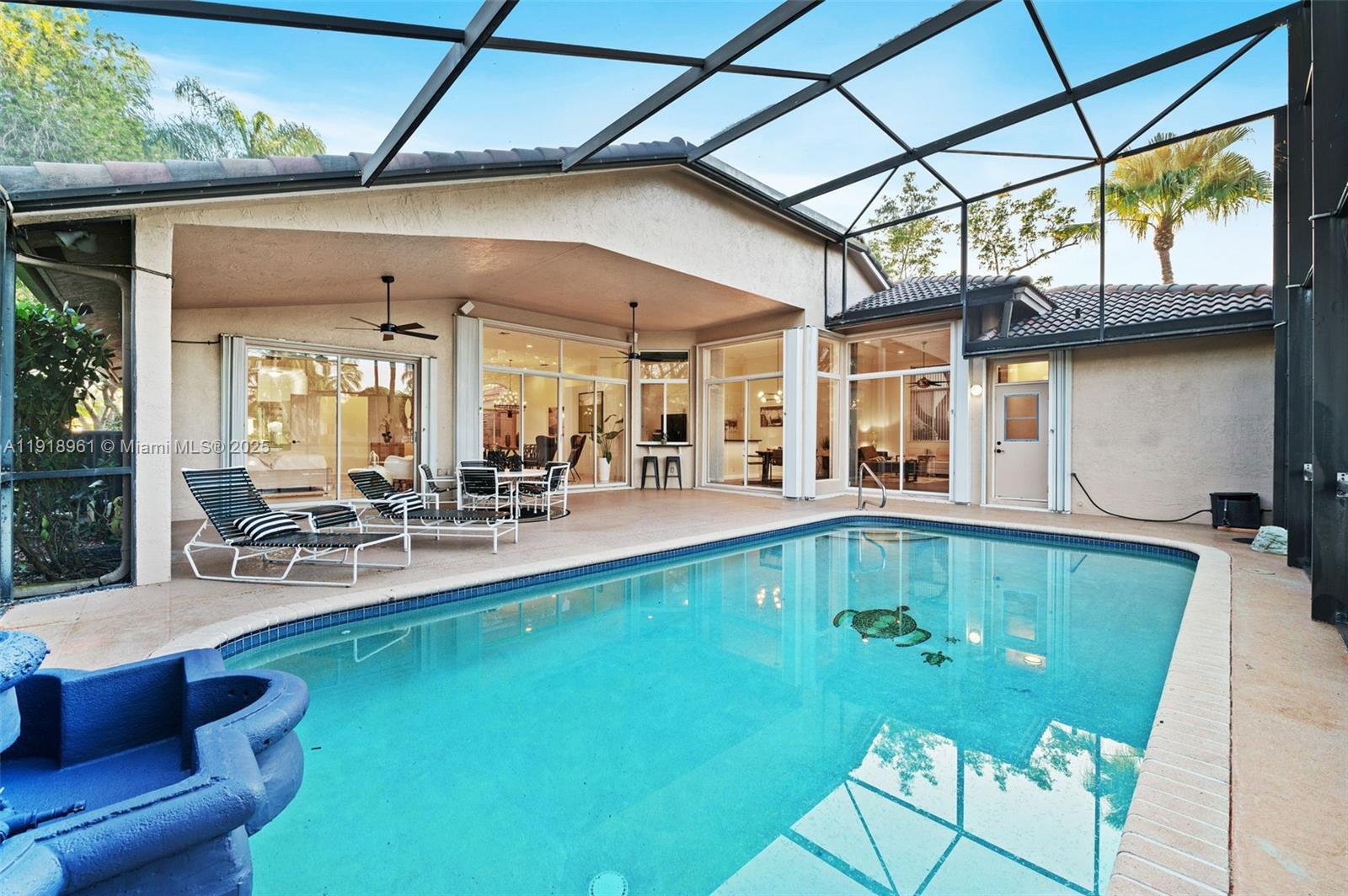 I invite you to tour my newest listing in Prestigious Weston Hills Country Club, a desirable, upscale community in the City of Weston offering peaceful ambiance and excellent security. This exquisite 4 Bed, 3 full Bath, Pool, home is situated on a serene lakefront lot and features its own distinctive blend of Elegant Luxury & Farmhouse Chic. Enter through glass French (impact) doors into an open foyer, with living & dining rooms overlooking the pool, patio & lake. The unique blend of this home's casual sophistication is alluring & inviting. Exquisite. Timeless high-quality marble flooring in the foyer, formal living & dining rooms, master bedroom, & the luxurious master bath. The heart of the home is the spacious kitchen with cabinets galore, vented exhaust, and a pantry. The kitchen, family & breakfast area offer wood flooring. Master, & all living areas overlook the pool, patio, & the lake. Floor plan offers a 3-way split, 12 ft volume ceilings, and crown molding, with all secondary bedrooms featuring wood flooring. The 4th bedroom is adjacent to the Cabana Bath, making it ideal for in-laws or teens. The 3rd bedroom, currently used as a home office, has a built-in closet and could be used as a guest room. Oversized 30x13 covered patio is perfect for entertaining with a pass-through (impact) window from the kitchen & two ceiling fans. Weston schools are A+ rated & Money Magazine has ranked the master-planned City of Weston among the top 10 places to live in the US.