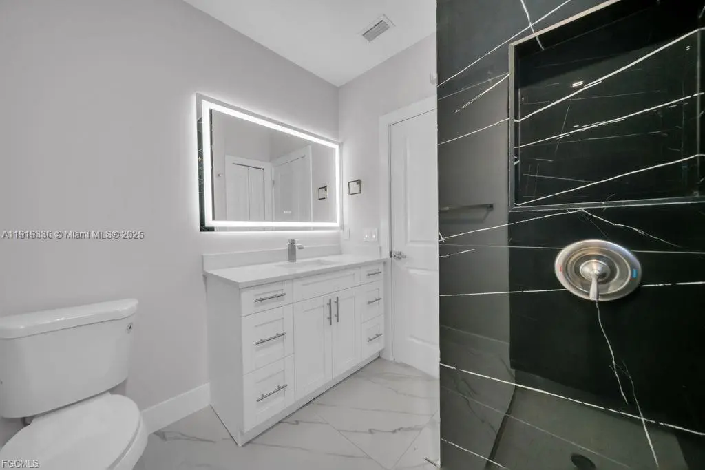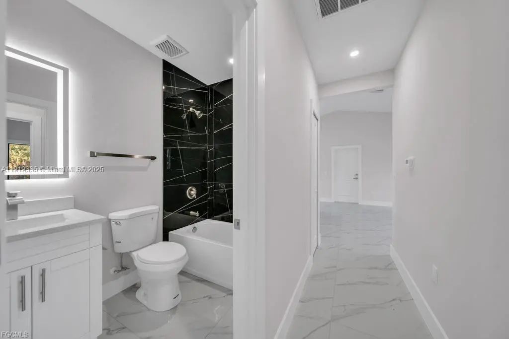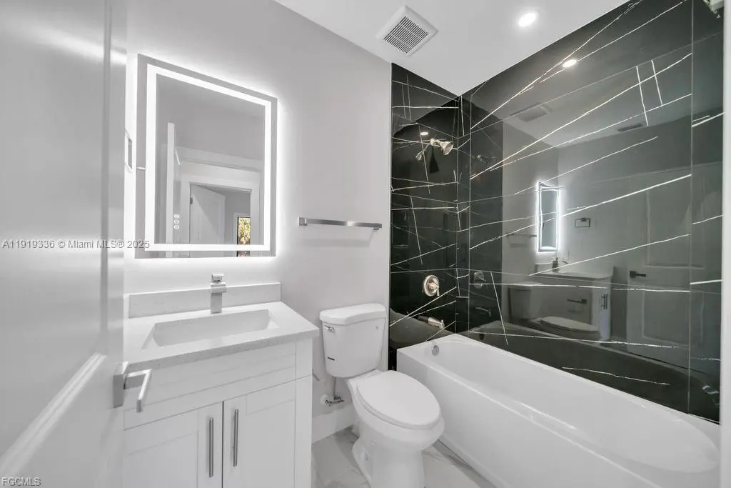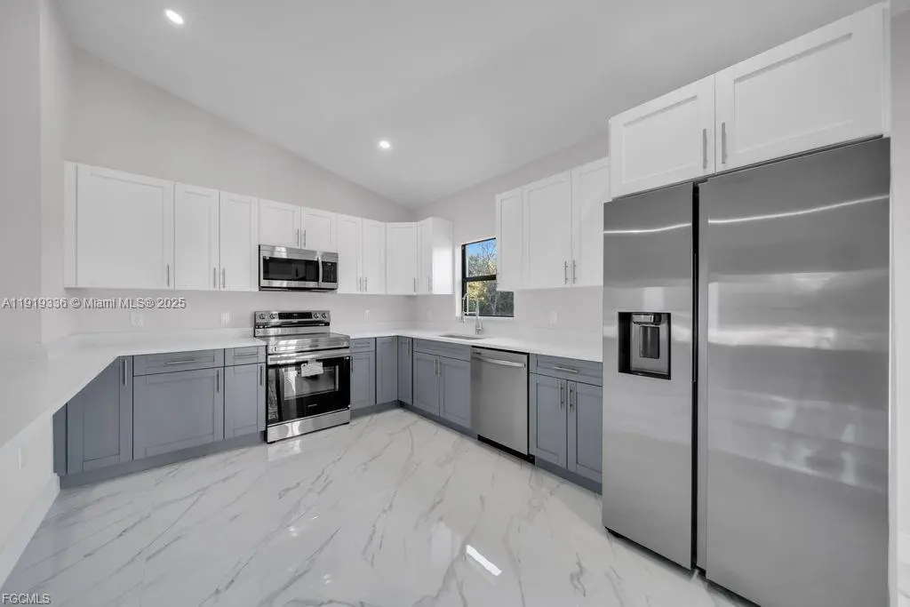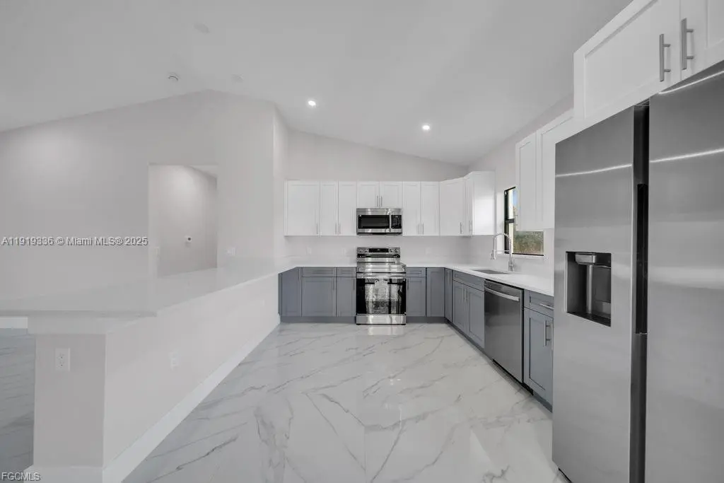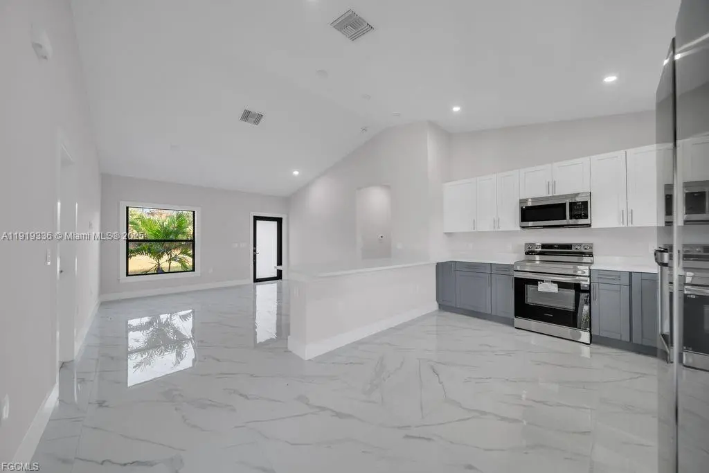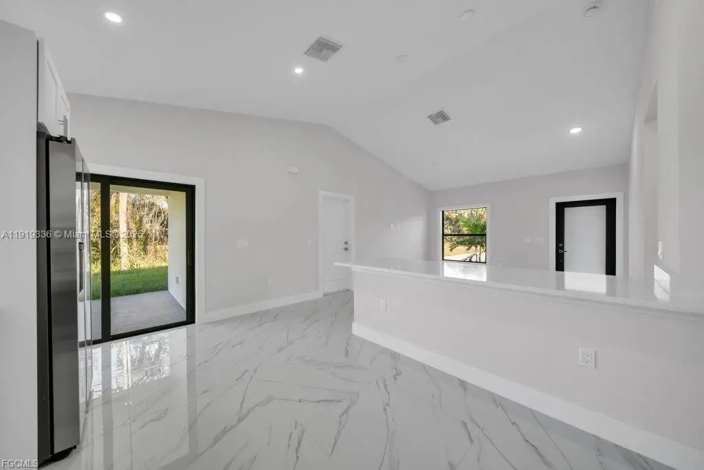 Beautiful 3-bedroom, 2-bath home with a 1-car garage, featuring a modern open-concept layout, elegant porcelain marble-style flooring, and an updated kitchen with quartz countertops, stainless steel appliances, and a spacious island. The home offers beautifully updated bathrooms, sliding doors that open to a cozy patio, and the added peace of mind of being located outside flood zones. A stylish, comfortable, and well-maintained property in a quiet and desirable area.