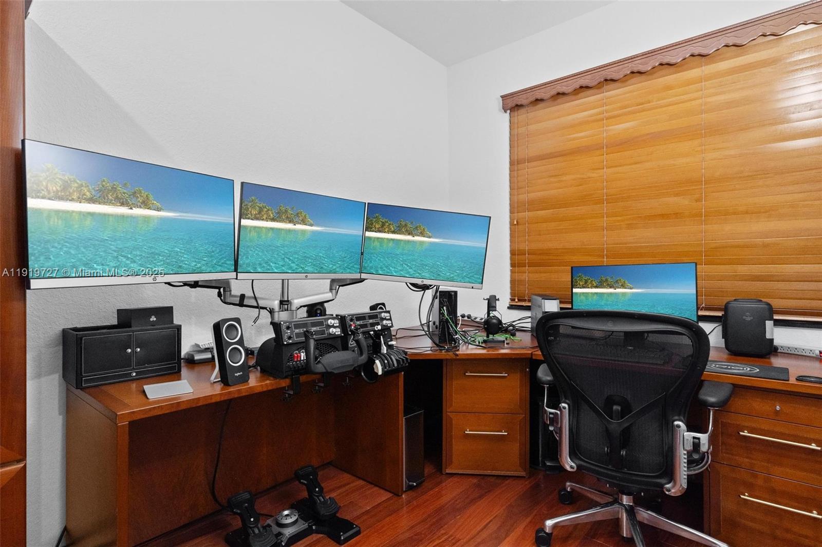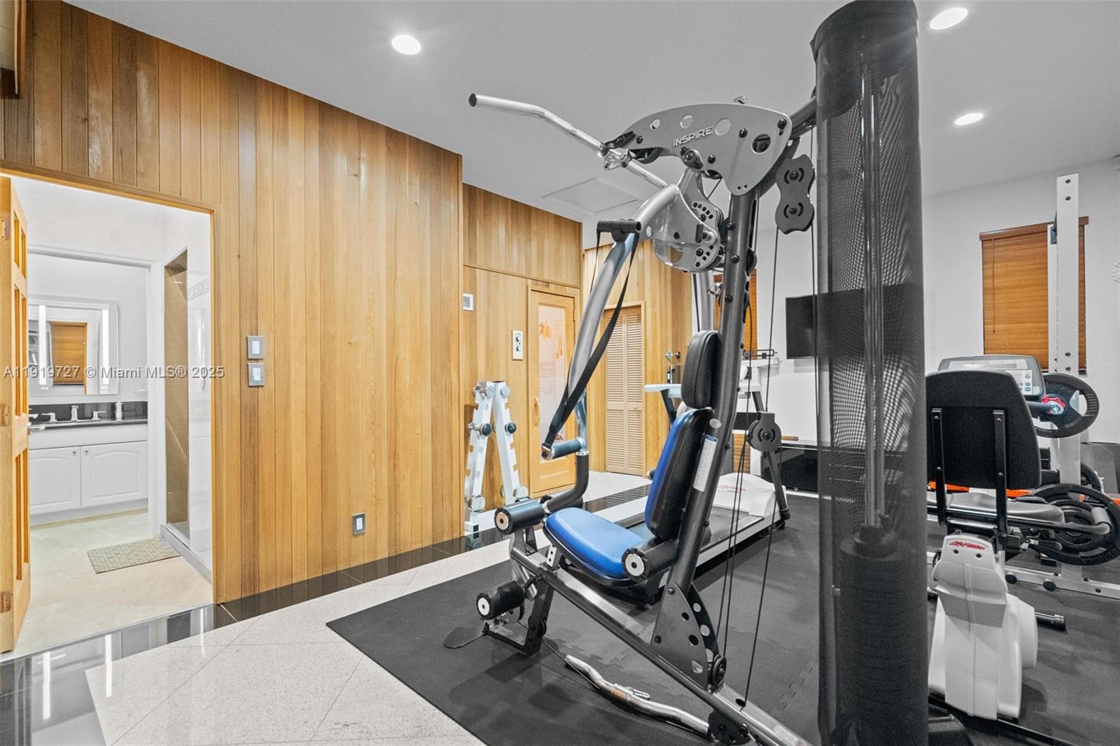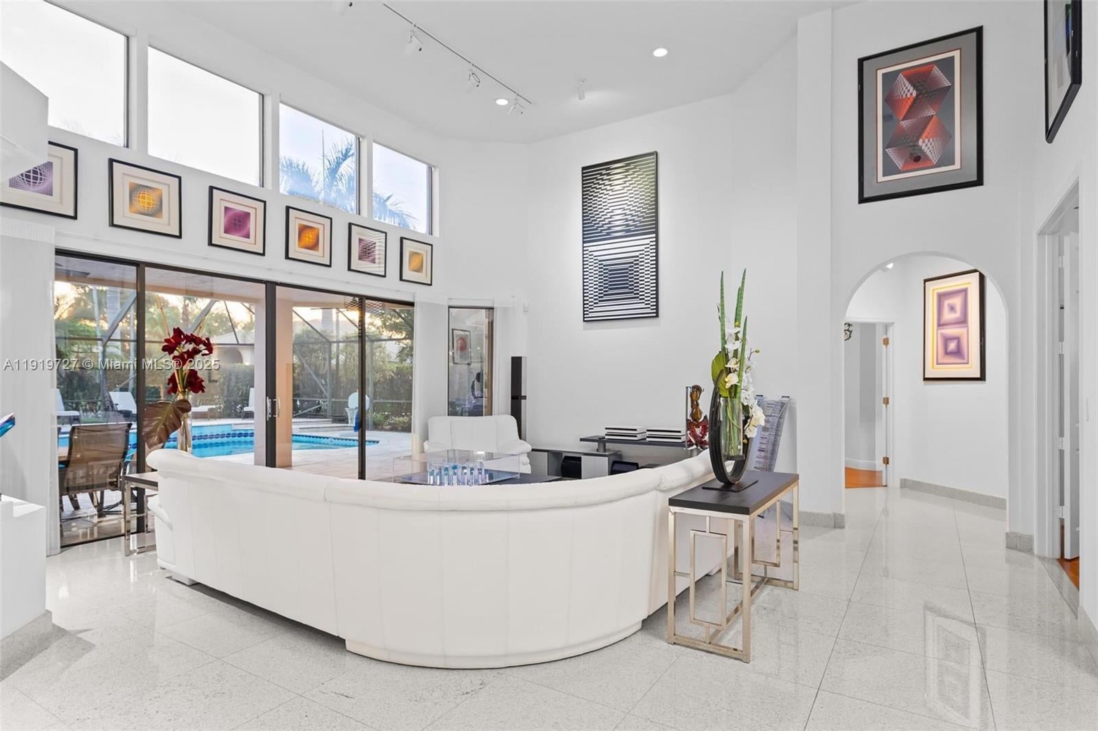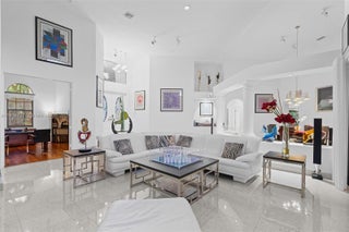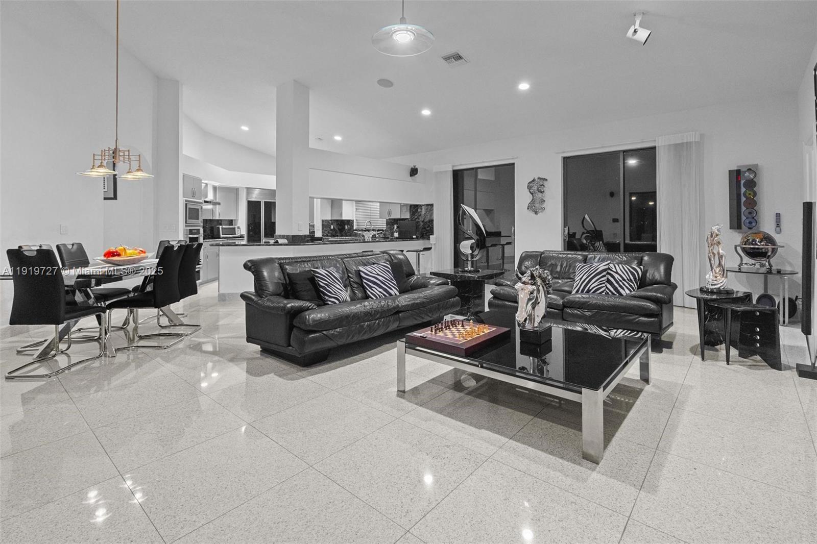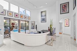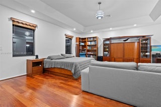 Step inside & be welcomed by elegant Imperial White/Grey granite floors flowing throughout the main living areas, instantly elevating the home's sophistication. This one-of-a-kind Palm Island residence opens directly into the Primary Wing master suite, featuring calming pool views, dual California Closets, Luminette & Silhouette blinds, & a spa-like bathroom. A peaceful office/den sits just steps away-ideal for remote work, reading or quiet focus. The thoughtfully designed 3-wing layout continues with the family-wing offering spacious bedrooms with custom California Closets, refined bathrooms, a generous laundry room & direct garage access. The Wellness wing sets this home apart-featuring a custom Finlandia sauna, home gym, full bathroom, & an expansive guest suite that functions as second master-Perfect for guests, wellness lifestyles, or multigenerational living. At the heart of the home, high ceilings connect the formal living room, elegant dining area, & oversized family room. The gourmet kitchen blends beauty & function with high-end appliances, Amadeus granite, premium cabinetry, & an intuitive layout designed for cooking, hosting, & gathering. Step outside to your private tropical oasis: a heated saltwater pool & spa with Diamond-Brite finish, screened patio & the lush landscaping that transforms the backyard into a resort-style retreat. The home comes equipped with a built-in B&O wired system located in the gym, family room, living room, master bedroom & pool area.