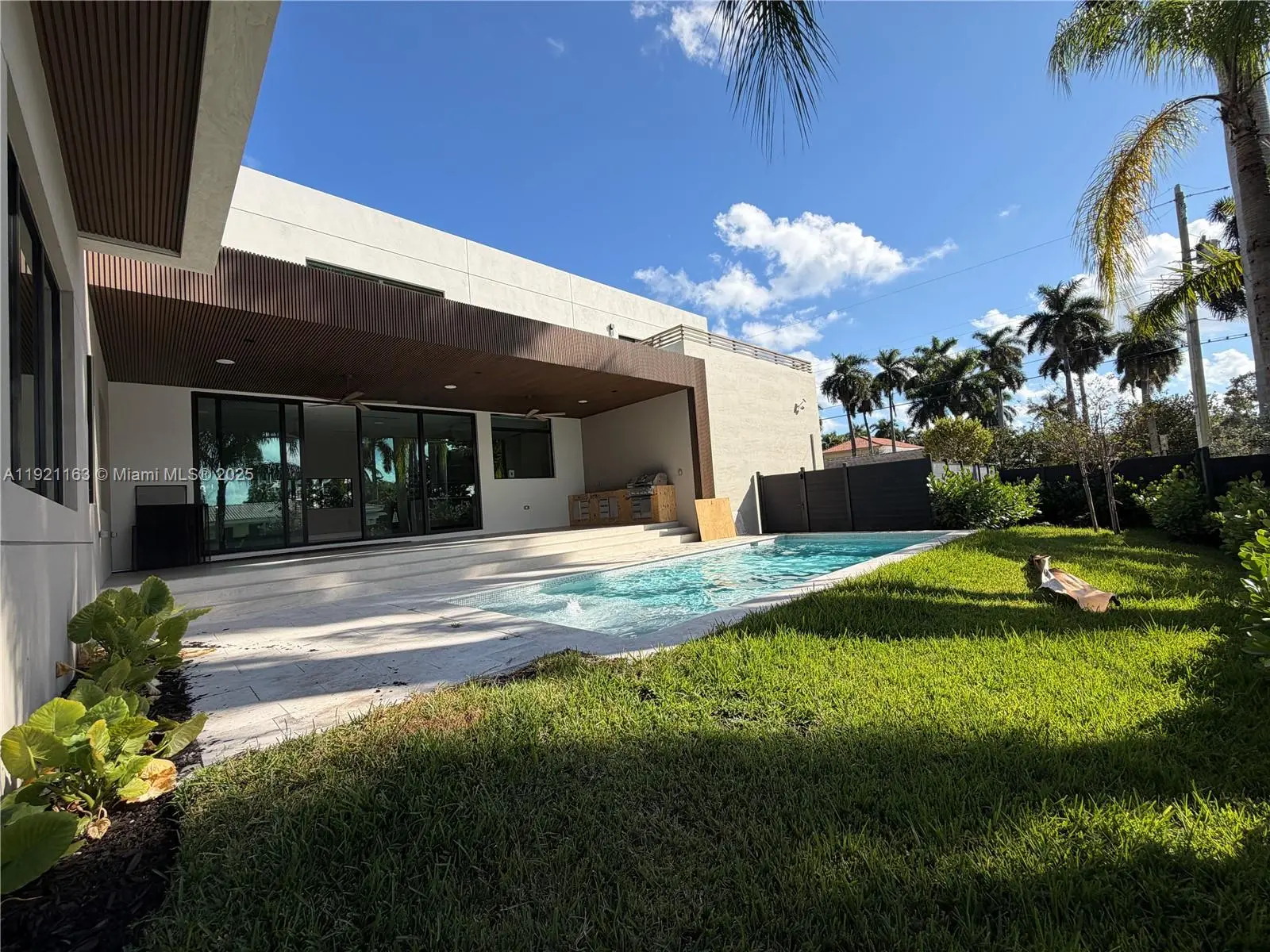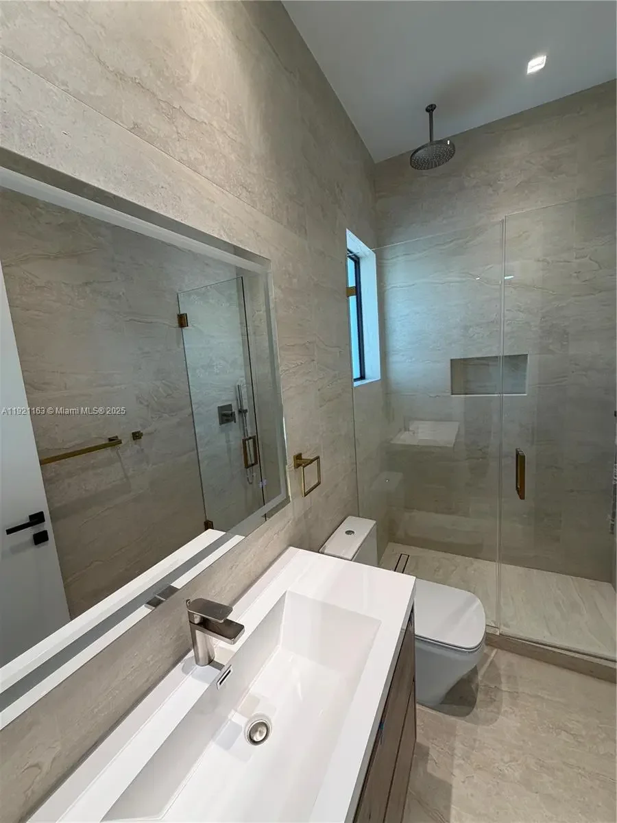 Stunning 2025 modern luxury residence in the highly sought-after Hollywood Lakes / North Lake area. This brand-new 5 bedroom, 5 1/2 bathroom estate features a striking contemporary façade with floating stone steps, lush landscaping, and oversized impact windows that fill the home with natural light. The open-concept design includes a custom chef’s kitchen with premium appliances, quartz-wrapped island, and floor-to-ceiling cabinetry. Spacious living and dining areas offer seamless indoor/outdoor flow through expansive glass doors. The home includes 5 ensuite bedrooms, each with refined finishes and generous closets. The primary suite features spa-style bathroom, oversized walk-in shower, freestanding tub, and elegant modern design. Outdoor spaces include a resort-style pool, large covered terrace with wood-accent ceiling, and professionally designed landscaping. High ceilings, LED lighting, and new 2025 mechanical systems throughout. Excellent location just minutes from the Intracoastal, Hollywood Beach, golf, marinas, Aventura Mall, shopping, dining, and Fort Lauderdale Airport.