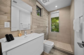 Experience contemporary elegance at its finest in this extraordinary two-story Miami Beach residence, thoughtfully designed to blend luxury living with the tranquility of lush tropical surroundings. Meticulously maintained, this 5-bedroom, 5.5-bath home offers over 3,200 SF of sophisticated interior living space. In one of Miami Beach's most desirable residential neighborhoods, backing prestigious North Bay Road. Bright, open-concept floor plan with oversized floor-to-ceiling windows that frame the beautifully landscaped greenery and flood the entire home with natural light. The main level features spacious living and dining areas, and seamless indoor-outdoor flow ideal for hosting. The gourmet chef's kitchen is fully equipped with premium appliances, including new cooktop, modern hood, double wall ovens, expansive quartz countertops, and custom cabinetry. An oversized island with seating creates the perfect gathering space for family and friends. Upstairs, four generously sized bedrooms each include en-suite bathrooms for ultimate privacy and convenience, while a fifth bedroom on the main level is ideal for guests or a home office. Retreat to your private backyard sanctuary an entertainer's dream. Enjoy a pool, sun deck, covered terrace, outdoor dining, and beautifully curated landscaping that creates complete privacy.