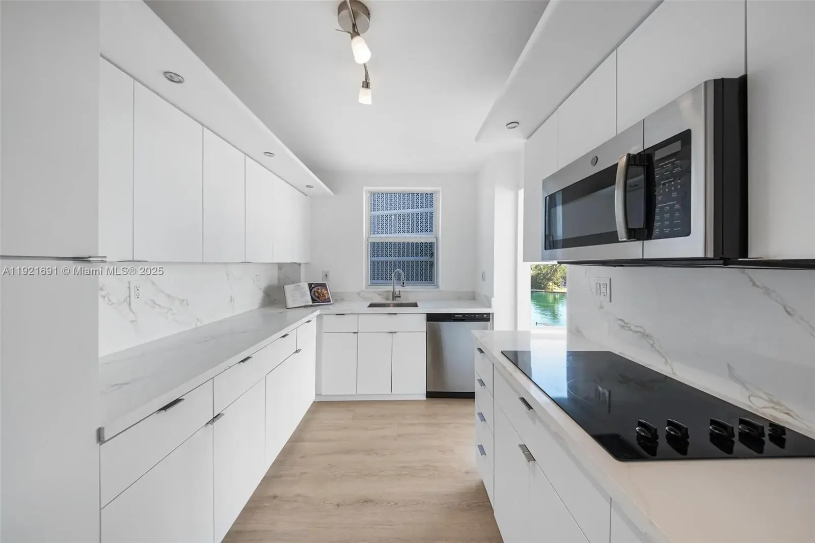 Beautifully updated 2 bedroom, 2.5 bath residence at the Blair House in Bay Harbor Islands. This spacious 1,770 sq. ft. unit features direct water views of Bal Harbour and Indian Creek Island from every room. Interior upgrades include luxury vinyl flooring throughout, impact windows, microcement spa-style bathrooms, and an updated kitchen with quartz countertops and stainless steel appliances. The open living and dining areas offer excellent natural light and a generous layout ideal for entertaining. Split bedroom design provides privacy, with two large ensuite bedrooms and a separate half bath for guests. Blair House is a classic waterfront building located close to Bal Harbour Shops, beaches, parks, and A-rated schools. Move-in ready and perfectly maintained. A must-see.