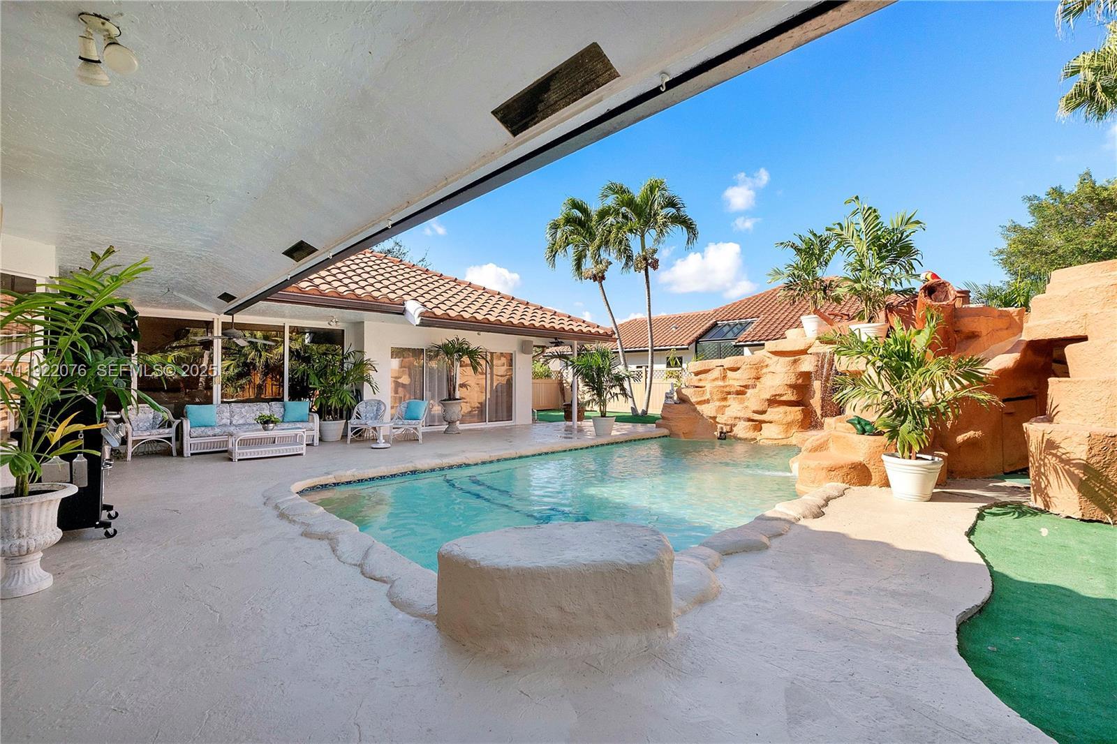 Unveil your captivating backyard oasis on this corner lot! This beautifully renovated home boasts a resort-style water park, huge waterfalls, and a pickleball/tennis/basketball court. Enjoy open-concept design, new quartz countertops in the kitchen, stainless steel appliances, and new bathrooms with a Jacuzzi jet spa. Professionally landscaped and highly upgraded throughout.