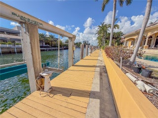 Live the coastal lifestyle in this expansive one-story home set on two beautiful waterfront lots, offering 160 ft of water frontage and a 140 ft dock. Relax by the pool, take in the South-facing views. No fixed bridges to Haulover Inlet. Thoughtfully designed with custom finishes, the home features high ceilings, 3+ bedrooms with potential to add more bedrooms, a spacious master retreat with two walk-in closets, an eat-in kitchen, wet bar, and formal dining. Sun-filled rooms open directly to the patio, pool, and water. Located in a prestigious 24-hour guard-gated community, you're just minutes to the beach, shopping, movies, dining, and Oleta State Park.