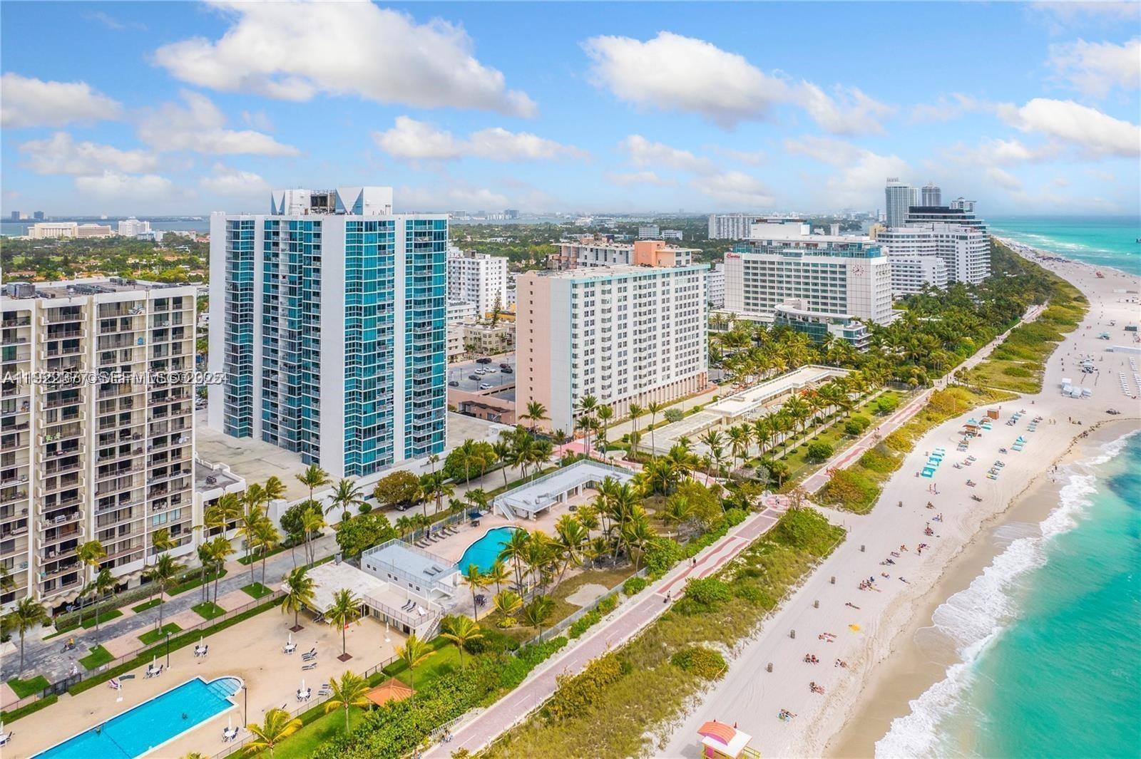 * * * Live the Miami Beach lifestyle at the oceanfront Mirasol Ocean Towers! This spacious 1 bedroom, plus den (possible second bed or office studio) - with 1 1/2 bath unit offer 1,190 sq. ft. - of light-filled interiors, lot's closet space, impact windows floor to ceiling, and sweeping ocean, bay, and pool views. Enjoy resort-style amenities including a heated pool and spacious deck, fitness center, sauna, bicycle storage, library/business center room and 24-hour front desk — all steps from the sand and minutes to South Beach, Ocean Drive, Lincoln Road and rejuvenate North Beach! Right behind the new Pedestrian walk-way from South to North Beach! - sporting recently new gym with Peloton and Life Fitness equipment. The neighbors within walking distance are the top Hotels/Venue of the Edition, The One, The W, Faena and the Faena Cultural district. Operating budget with reserve funding. Maintenance including Cable TV and WIFI - Per association, dogs allowed if emotional or service dog. One assigned parking space and visitors parking.
