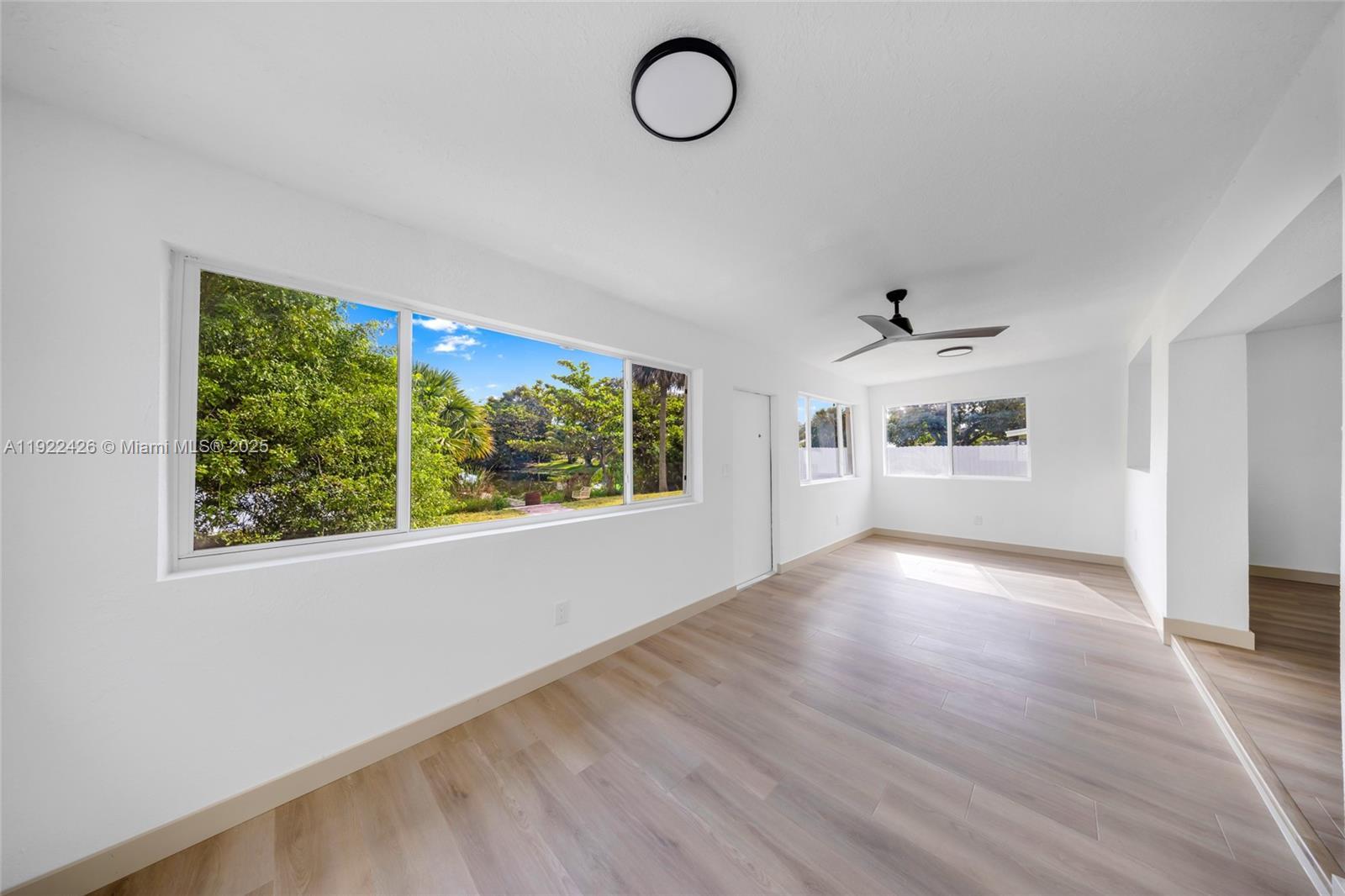 Welcome to this fully remodeled gem in the heart of Miami Gardens! This spacious 4-bed, 3-bath home has been thoughtfully redesigned with an open layout that showcases gorgeous water views the moment you walk in. The expanded living area flows seamlessly into the sun-room, creating the perfect space for relaxing or entertaining. The home offers incredible functionality with two entries (front door + kitchen-side entrance by the carport) and a separate utility room with laundry hookups. One side of the home features a private hallway with a beautifully updated guest bath, leading to the primary suite—complete with a huge walk-in closet, linen closet, and an additional attached room ideal for an office, nursery, or den. Two additional bedrooms sit down the same hallway, one with its own full ensuite bath. Upgrades include brand-new flooring, baseboards, interior/exterior paint, interior and exterior doors, a stunning new kitchen with modern cabinetry, FULL Samsung appliance package, farm-style sink faucet, and completely redesigned bathrooms featuring chic, stylish finishes. Step outside to a serene backyard with peaceful water views and a dock—your own private escape. Unbeatable location: Just 5 minutes to Hard Rock Stadium, close to Calder Casino, the Turnpike, I-95, Topgolf, Walmart Supercenter, Calder Race Course, schools, parks, and tons of shopping and dining.