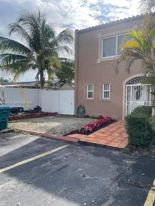 Beautiful 2-story corner townhouse that feature a spacious living room, dining room, modern update kitchen, 2 bedrooms, 1.5 baths , utility room, ceramic tiles & wood floors, central air, large fenced backyard, property is with a side entrance plus an additional door that exit to the back street easily converted to a car door for an extra parking. H.A.O is monthly $30 from January-October, November and Dec are free of change. Security cameras installed around the property. New metal fence around the property. Roof with insulation system that help keeping the property cool and save energy (with permit) AC- impact windows and doors , water heaters, refrigeration, microwave and oven, centrally located near shopping, school, houses for worship and major highway. Sold in "AS IS" condition